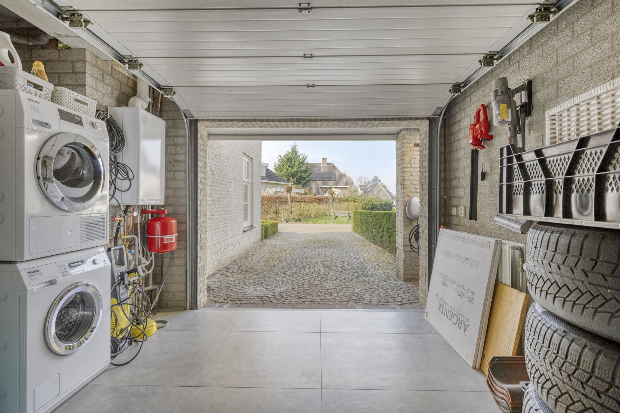 Tot slot wordt de begane grond compleet gemaakt met een inpandige garage, die via de multifunctionele ruimte te bereiken is. Ook deze ruimte is geïsoleerd en beschikt over het verwarmingssysteem (CV-ketel uit 2025) en de aansluitingen voor een wasmachine en droger.