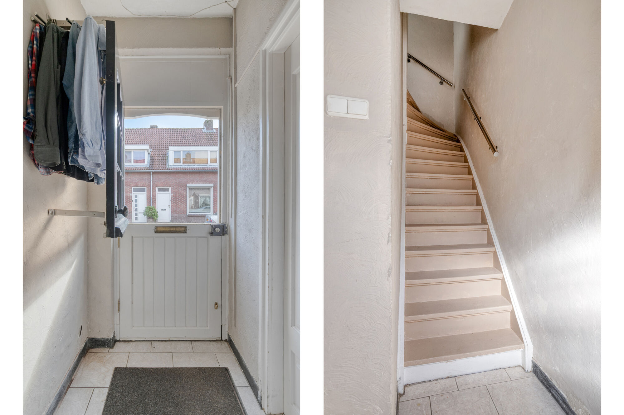 Dat is al een mooie binnenkomer: de voordeur kan in twee gedeeltes open: de bovenzijde kan apart van de onderzijde worden geopend. Heel handig om te luchten en tegelijk kleine kinderen en huisdieren veilig binnen te laten blijven of om een praatje met degene die aan de voordeur staat, te maken.