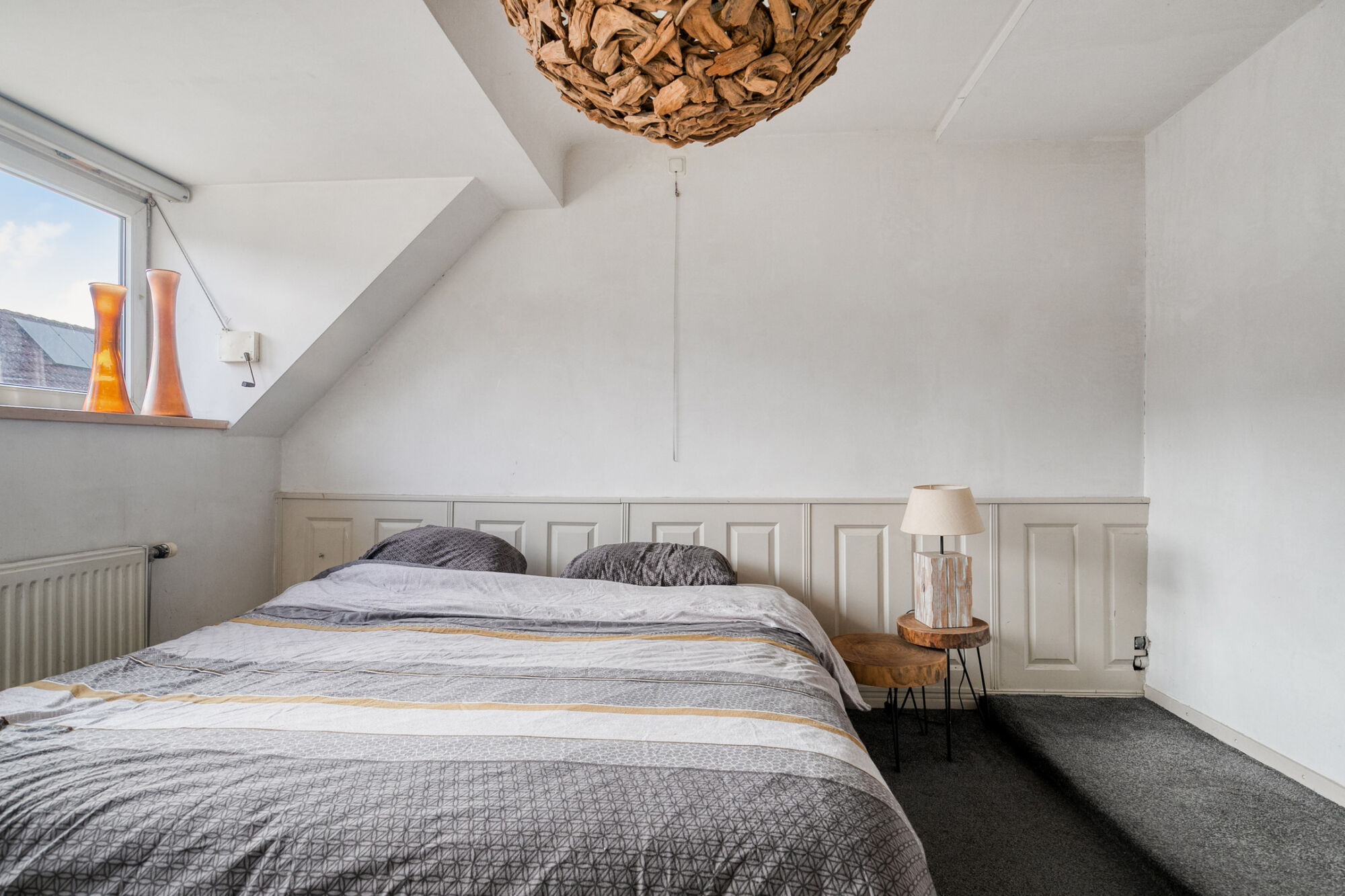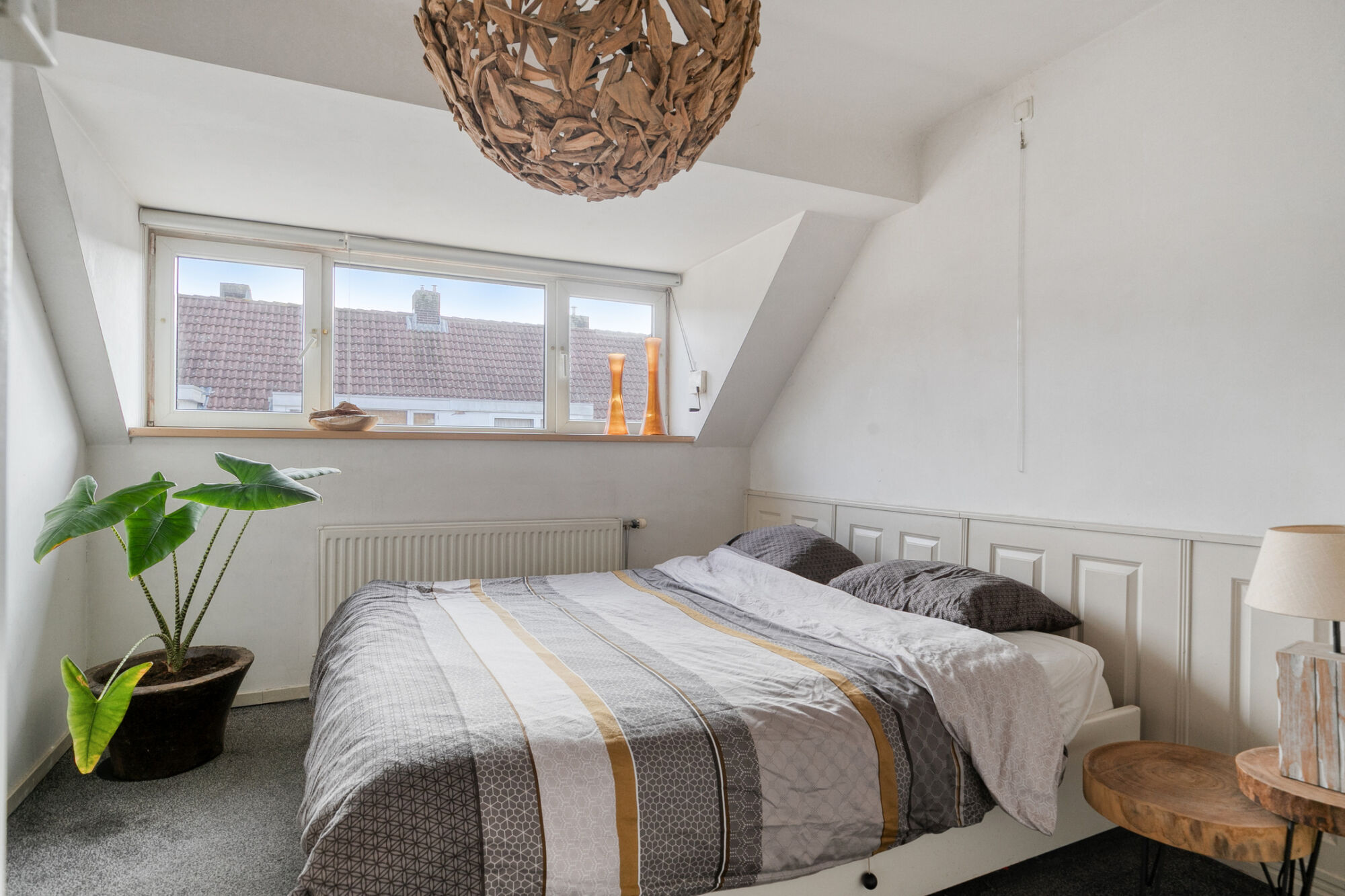 De ouderslaapkamer heeft een fraaie lambrisering. Een deur leidt je naar de grote inbouwkast/berging. De andere slaapkamer is nu ingericht als kleedkamer. In de open inbouwkast is een wateraansluiting omdat hier voorheen een douche was. Ook deze kamer biedt volop ruimte en licht vanwege de dakkapel.