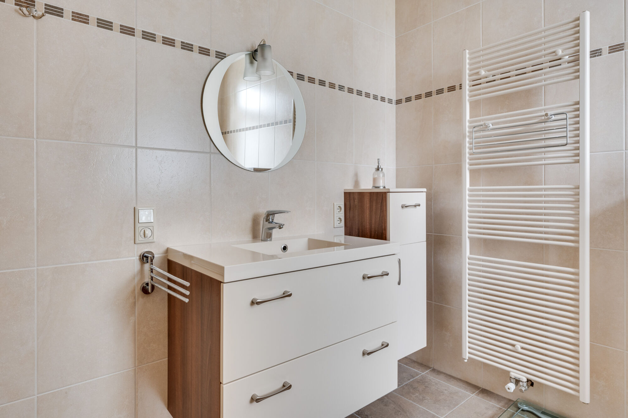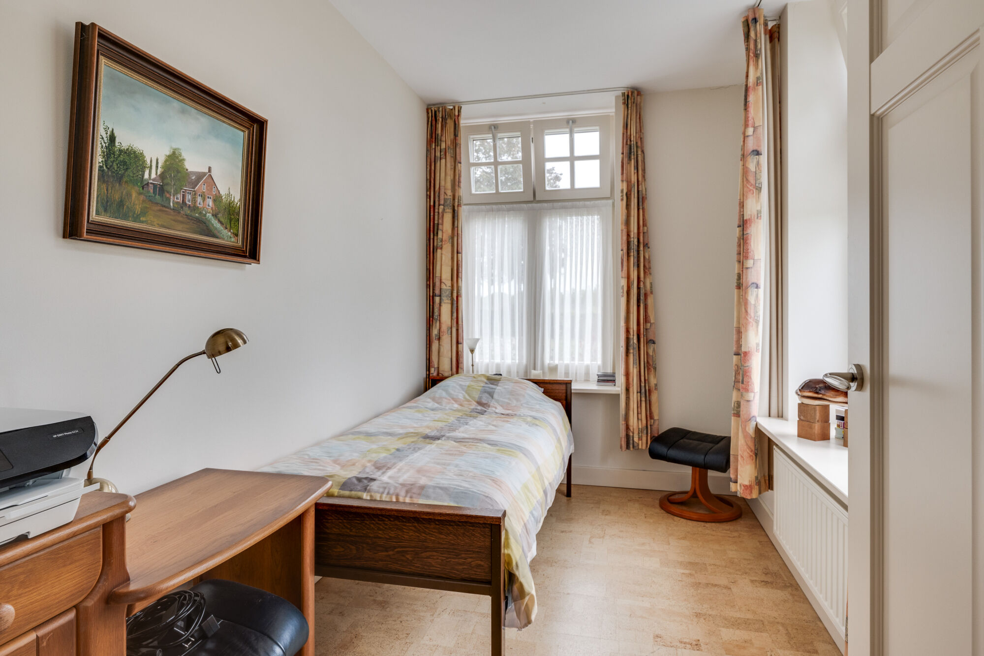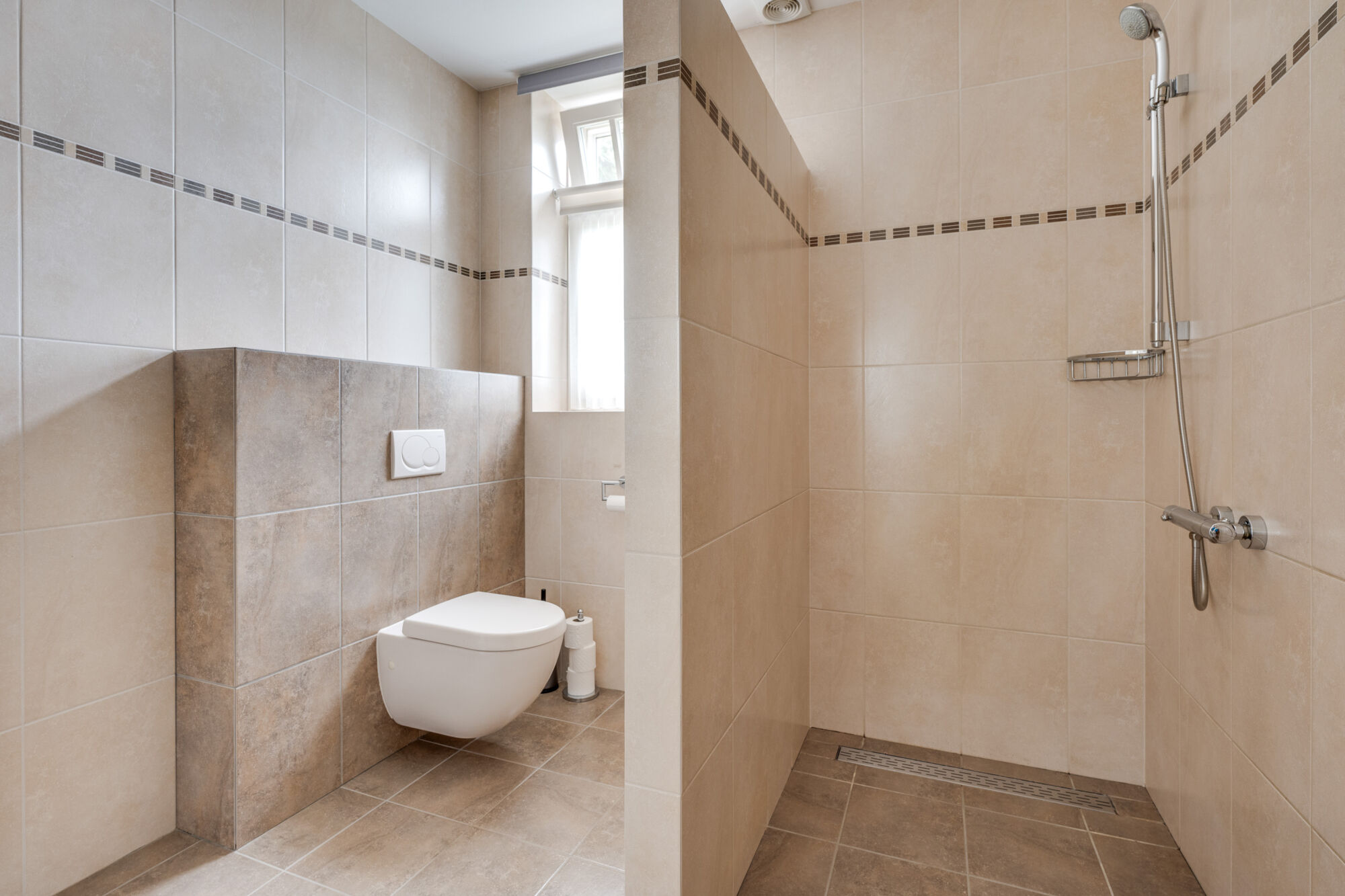 De ouderslaapkamer is een prettige ruimte en beschikt over een eigen badkamer. Deze badkamer ziet er piekfijn uit en is uitgerust met een inloopdouche, toilet en wastafel. Ook is er in de slaapkamer nog een trapkast bereikbaar.