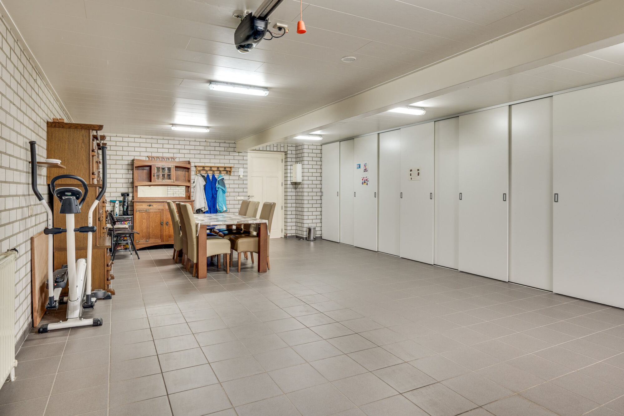 Vervolgens de ruime inpandige garage. Deze garage is keurig afgewerkt met een tegelvloer, inbouwkasten en een elektrische deur. Zoals u op de foto kunt zien is deze ruimte ook goed te gebruiken als hobbykamer.