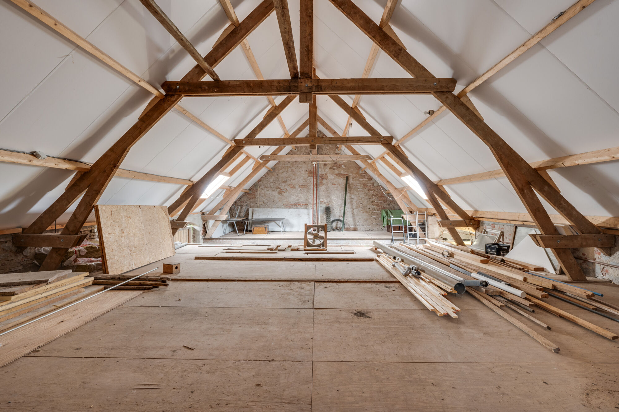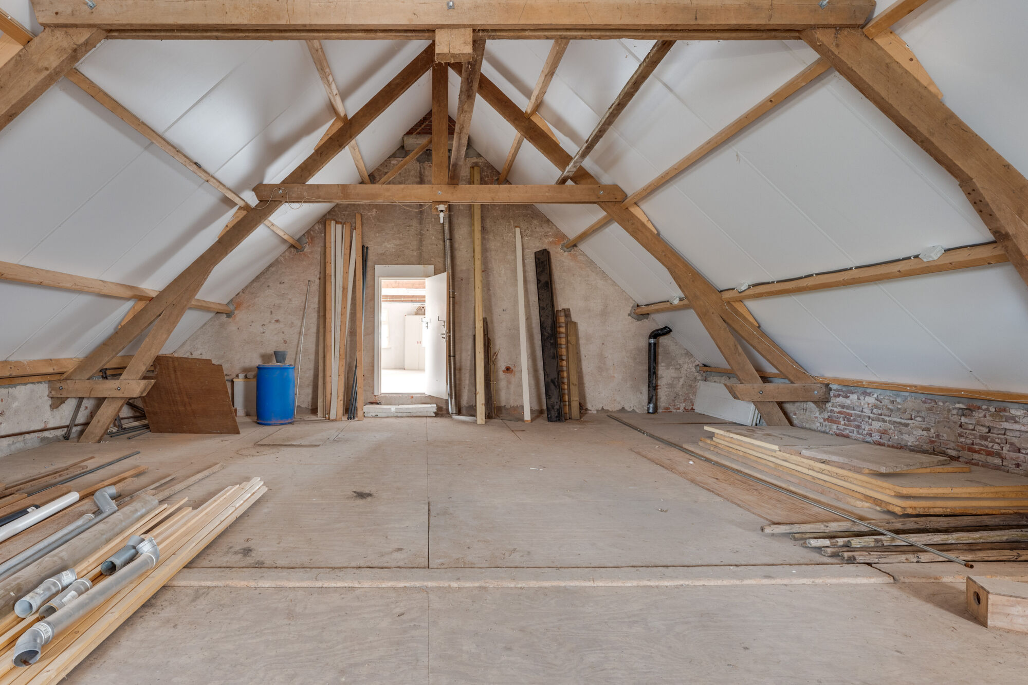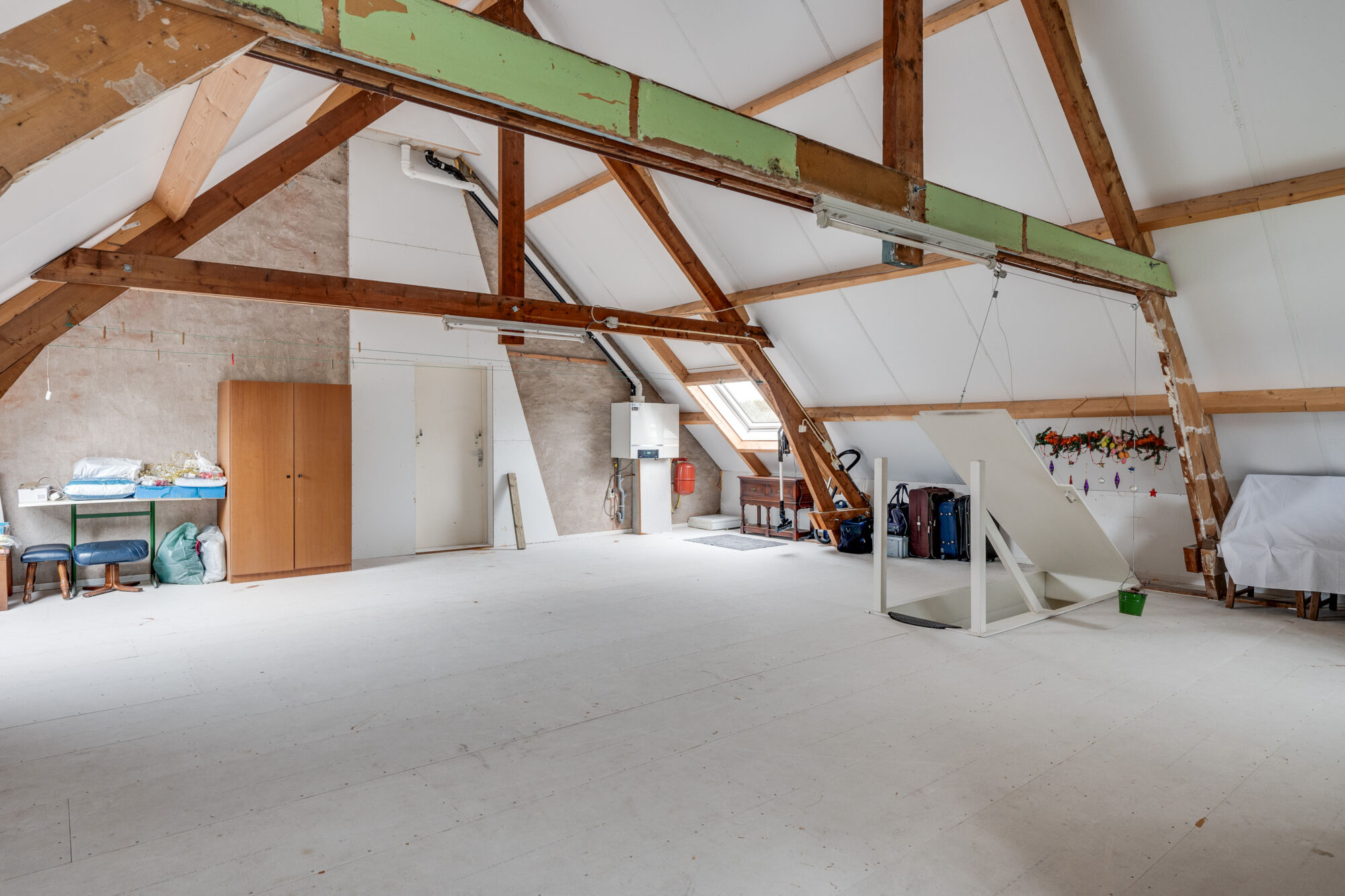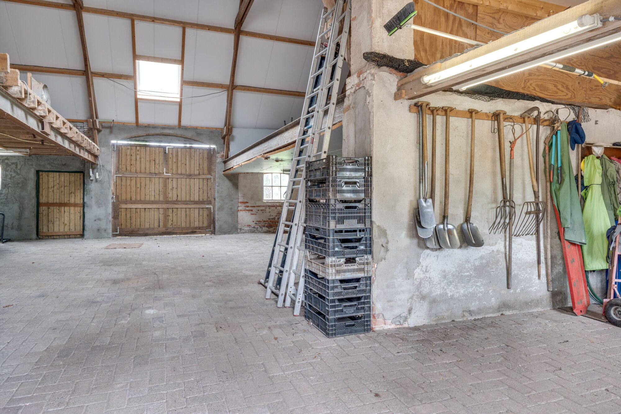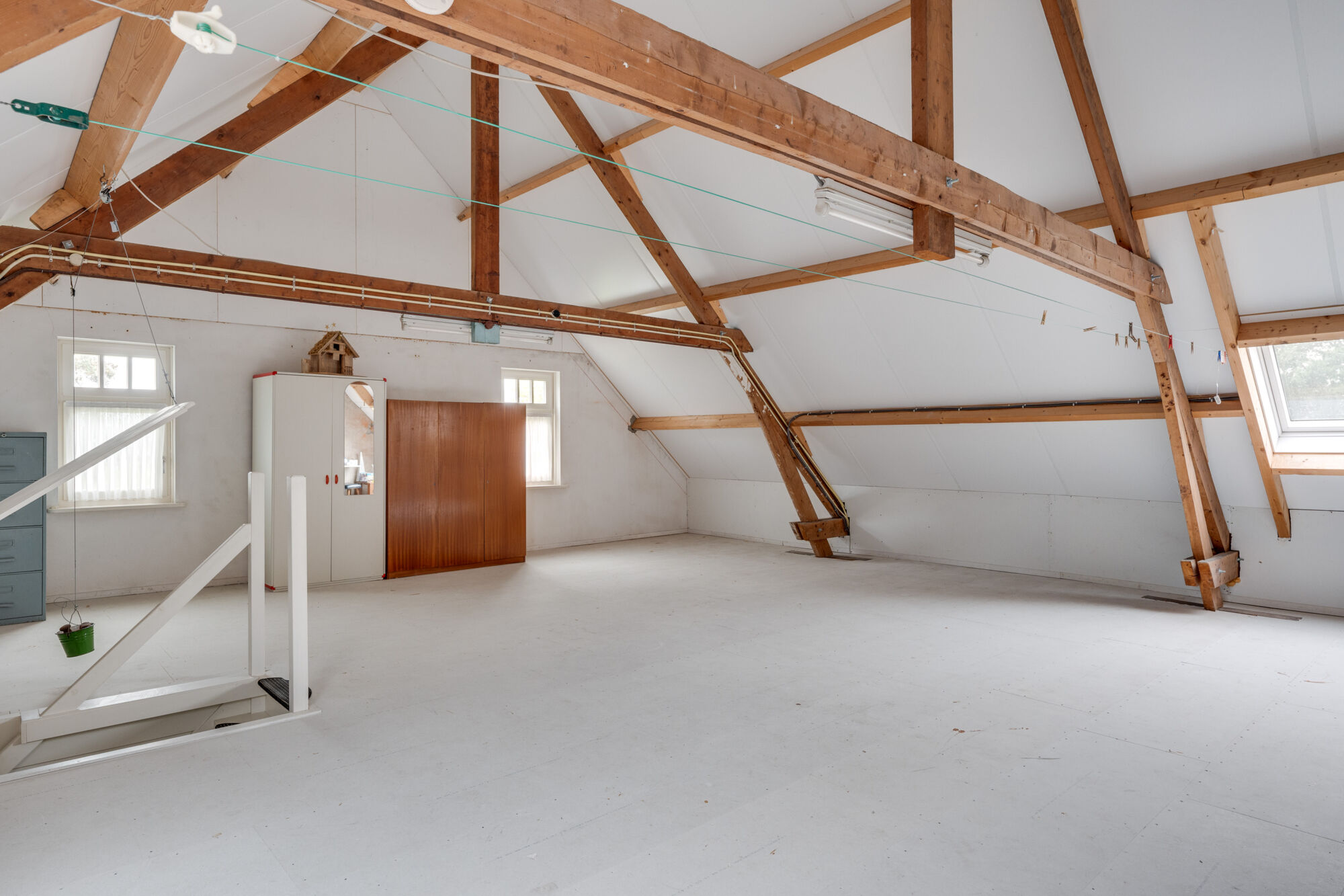 Het schuurgedeelte is een open ruimte met 2 schelften waar u naar hartenlust kunt klussen. Zoals reeds benoemd is er de mogelijkheid om de woning te splitsen. Van deze ruimte zou u dus ook een woning kunnen maken. Nu is de ruimte zeer geschikt tot het bergen van spullen of auto’s. Verder treffen we nog een fietsenberging en een aangebouwde schuur.
