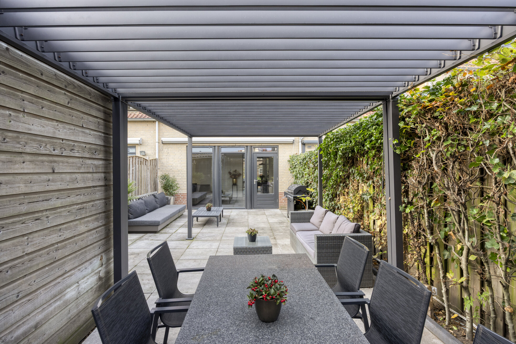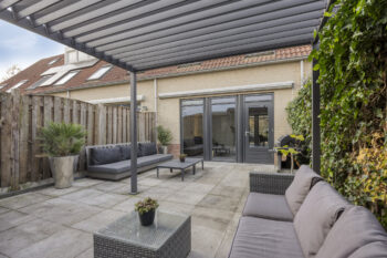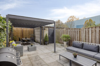 – Fraaie en privacy biedende achtertuin met overkapping (ter overname)