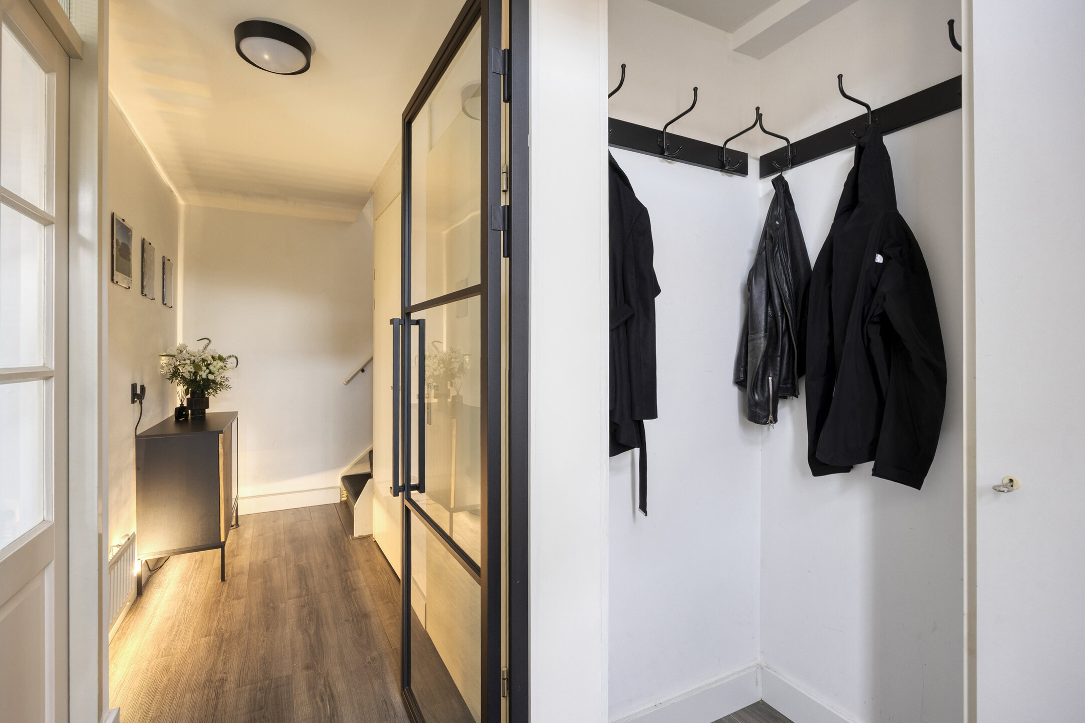 In de rustige straat is er volop vrije parkeergelegenheid. Ook achter de woning is er ruimvoldoende parkeergelegenheid. Aan de voorzijde van de woning is een omkasting voor de afvalbakken (ter overname) en een wateraansluiting. Via de leuke voortuin kom je bij de voordeur die je leidt naar de vestibule met de vernieuwde meterkast en de kapstok. De nieuwe antracietkleurige, aluminium glasdeur die de vestibule scheidt van de hal zorgt ervoor dat er geen kou binnenkomt.
