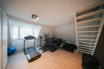 De verdieping beschikt over 3 grote slaapkamers en een luxe badkamer. 1 slaapkamer is te bereiken via de sportkamer waar tevens een vaste trap naar de zolder is gemaakt. U kunt hier relatief eenvoudig 4 slaapkamer creëren wanneer nodig.
