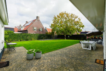 De tuin is zeker voor Brandevoortse begrippen uitzonderlijk ruim. Het perceel beslaat maar liefst 1.200 m², iets wat in Brandevoort zelden voorkomt. Zowel de voor- als achtertuin zijn onderhoudsvriendelijk aangelegd, met een groot gazon en een ruim terras. De oprit biedt plaats aan meerdere auto’s, waardoor parkeren op eigen terrein geen enkel probleem is. Het hekwerk is elektrisch te bedienen. Tegen het bijgebouw is nog een extra overkapping gemaakt. Hieronder kunt u tuinspullen droog neerzetten.