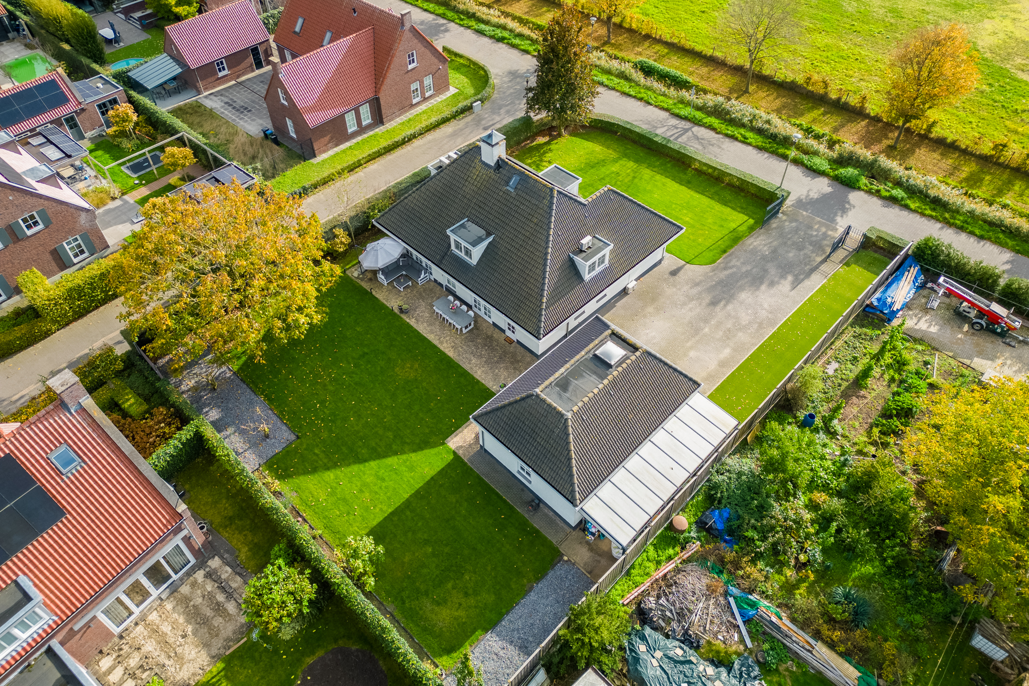 Uniek aan deze woning is het vrijstaande bijgebouw. Oorspronkelijk een dubbele garage, maar nu omgebouwd tot een volwaardig multifunctioneel verblijf met eigen keuken, toilet en vaste trap naar de zolder. Perfect voor gebruik als praktijkruimte, gastenverblijf, atelier of mantelzorgwoning.