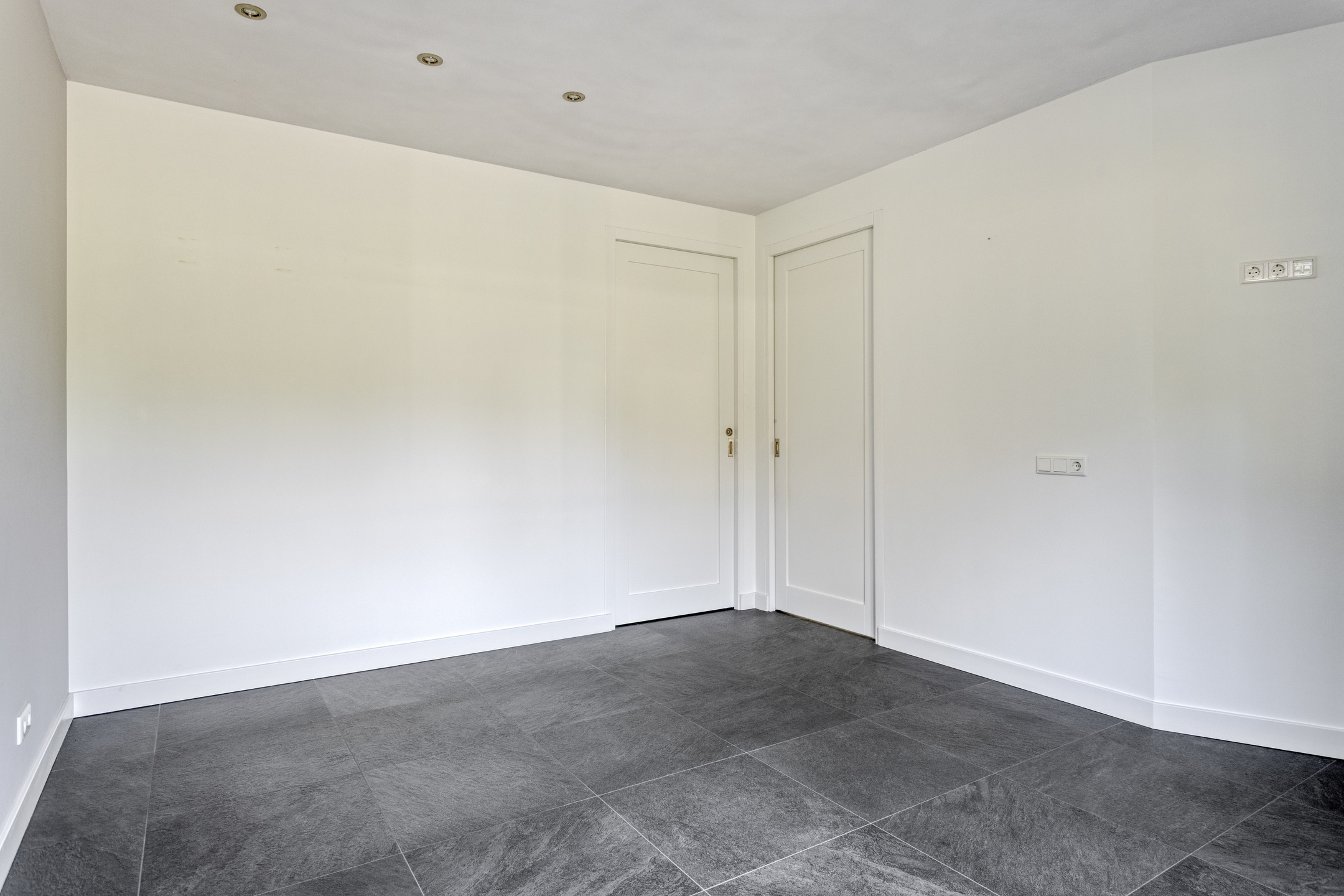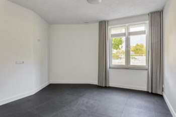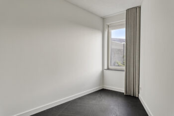 De woning beschikt over twee slaapkamers van goed formaat. Beide kamers zijn netjes afgewerkt met strakke wanden en een donkere tegelvloer. De kamers bieden voldoende ruimte voor een bed en kastruimte, en kunnen desgewenst ook worden ingericht als werkkamer of hobbyruimte.