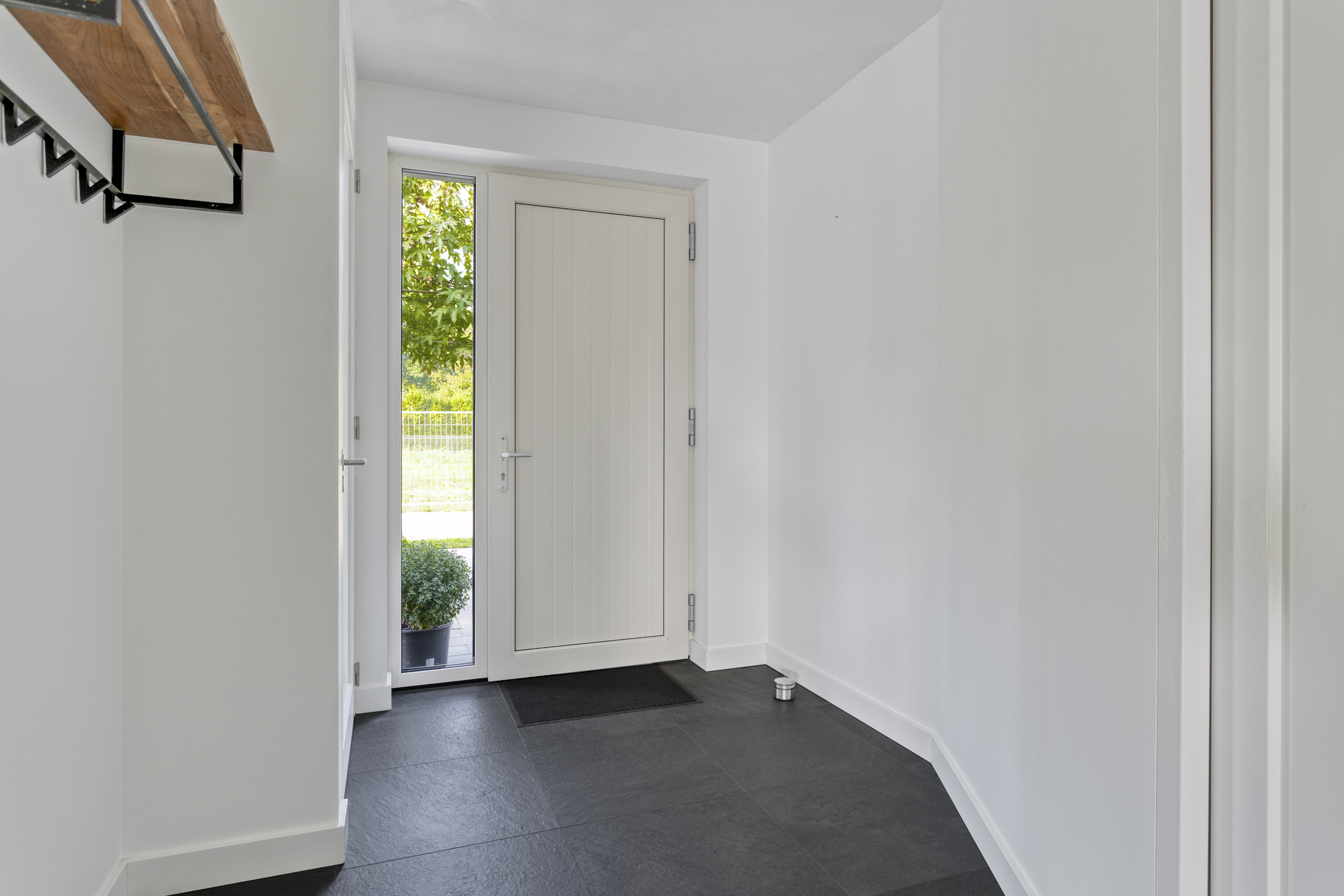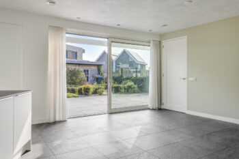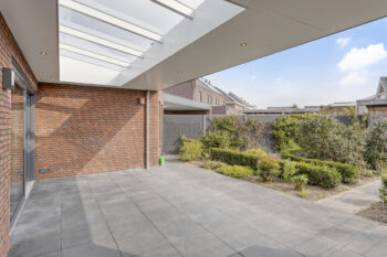Via de schuifpui is er directe toegang tot de overkapping en de tuin waardoor binnen en buiten prettig met elkaar verbonden zijn.