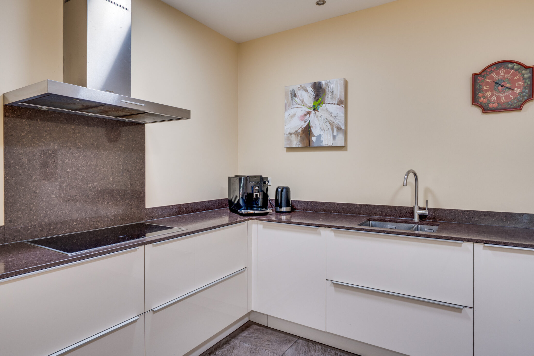Er is meer dan voldoende kastruimte en het granieten aanrechtblad geeft het geheel een luxe en duurzame uitstraling.