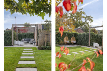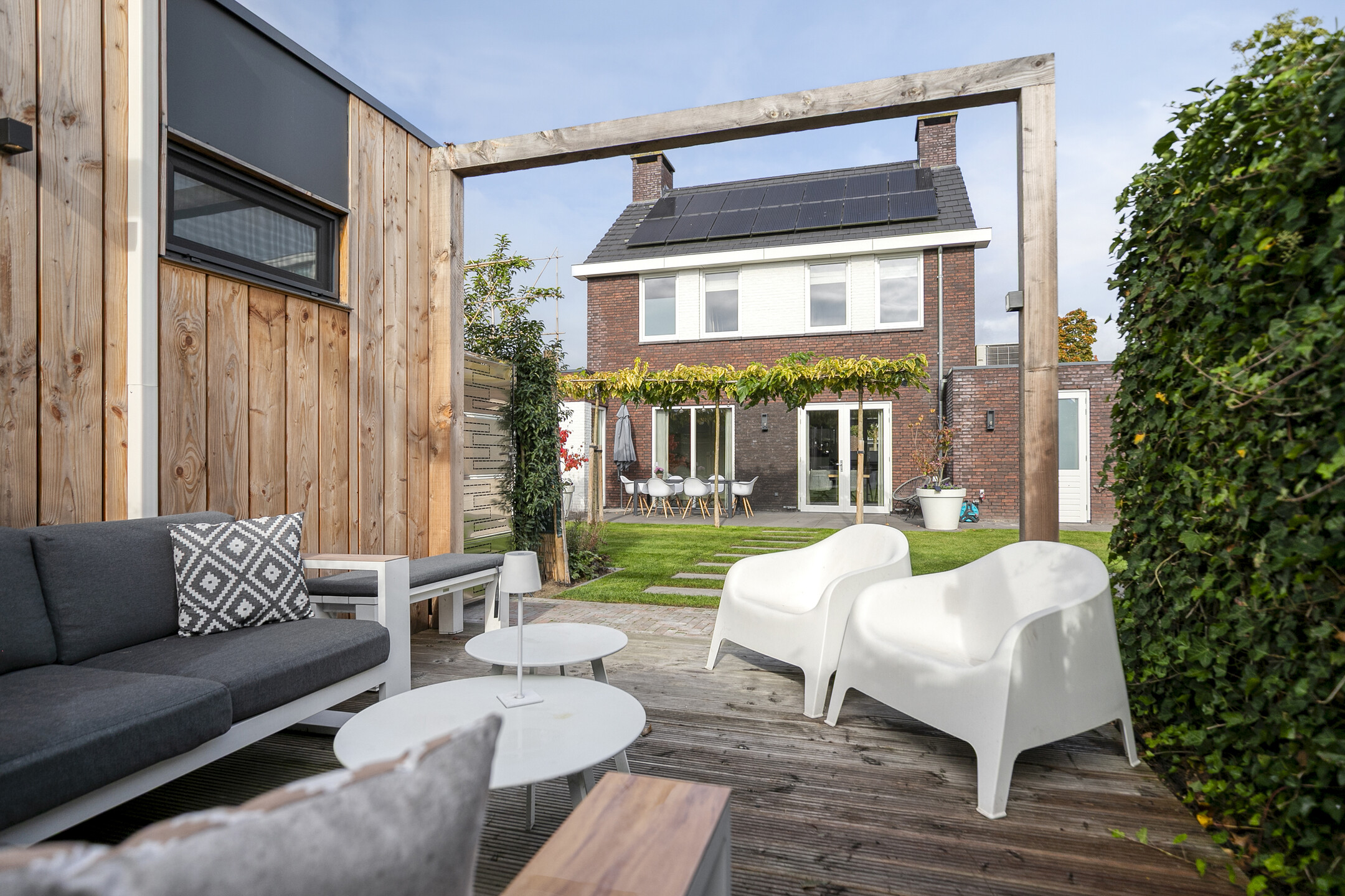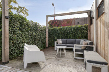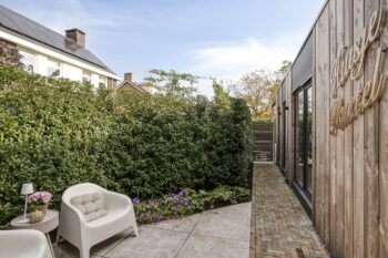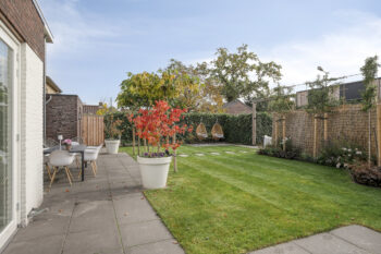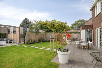 De recent aangelegde tuin is werkelijk van alle gemakken voorzien en straalt kwaliteit en sfeer uit. Door het gebruik van mooie, duurzame materialen en stijlvolle beplanting vormt het geheel een harmonieus verlengstuk van de woning. Met maar liefst vier terrassen, verspreid over het perceel, is er op ieder moment van de dag een heerlijke plek te vinden – zowel in de zon als in de schaduw. De tuin is gunstig gelegen op het zuiden en biedt optimale privacy. Bovendien is de tuin ook via het zijpad eenvoudig te bereiken.