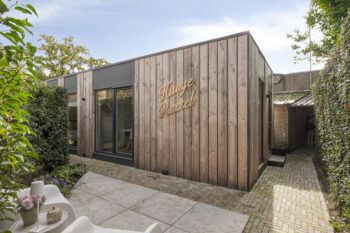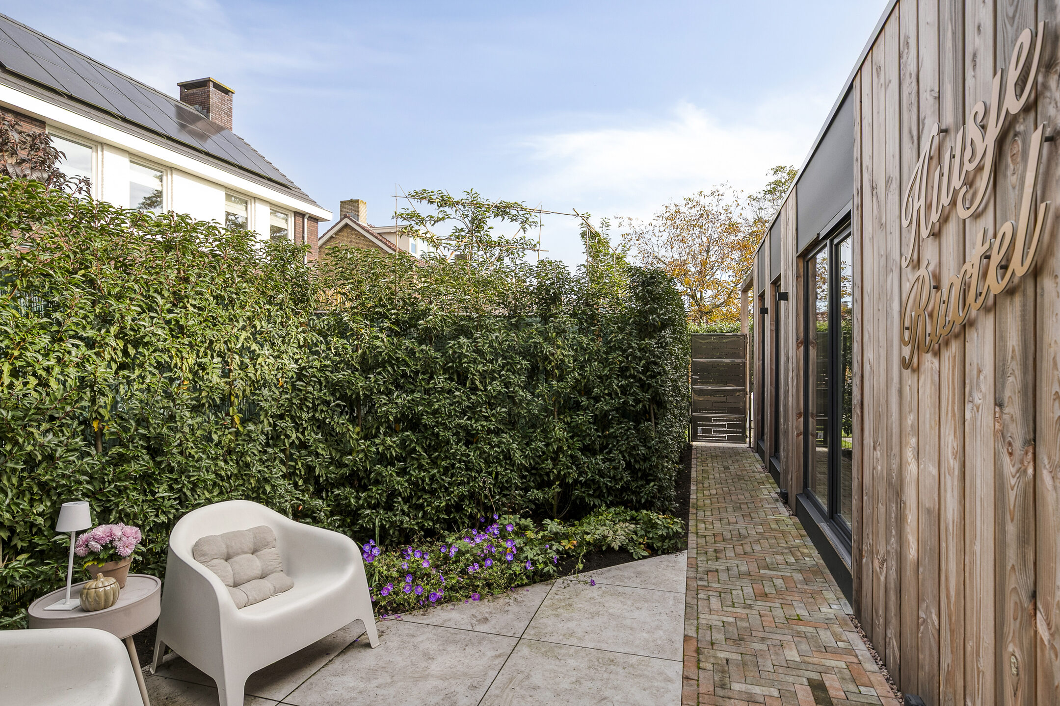 Unieke extra: luxe multifunctioneel bijgebouw. Een absoluut pluspunt is het recent gebouwde bijgebouw van ca. 33 m² achterin de tuin. Deze zelfstandige ruimte beschikt over een volwaardige woonkamer, pantry, slaapkamer en eigen badkamer. Perfect als: