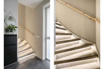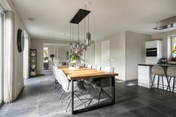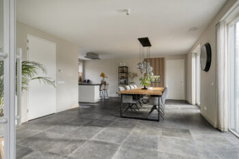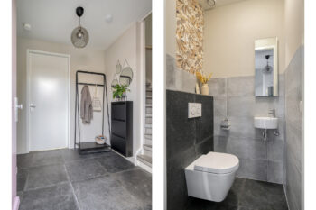 Bij binnenkomst valt direct de fijne sfeer en doordachte indeling op. De ruime hal biedt toegang tot het gastentoilet, de meterkast en de trap naar boven. De lichte, open leefruimte vormt het hart van de woning.