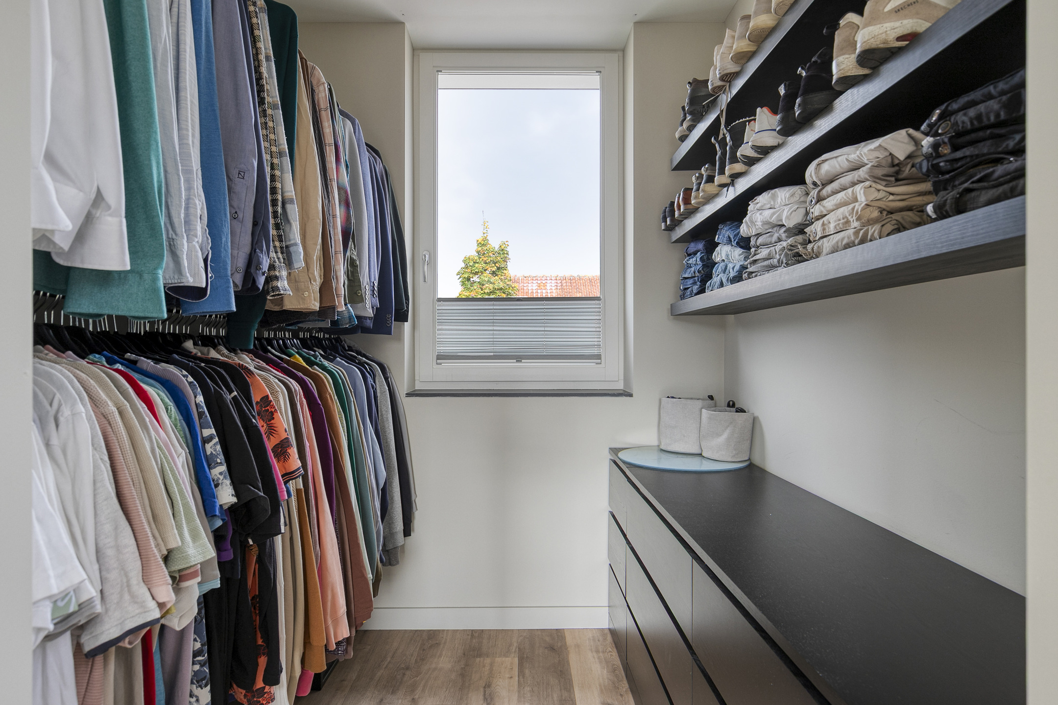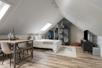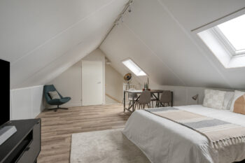 Op de tweede verdieping bevindt zich een royale en heerlijk lichte zolderverdieping. Dankzij de grote dakramen valt er veel daglicht binnen, waardoor de ruimte een prettige en open sfeer heeft. Door de ruime afmetingen is deze verdieping uitstekend te gebruiken als extra slaapkamer, werkruimte of hobbykamer, en kan ze desgewenst eenvoudig worden opgedeeld in meerdere kamers. Achter de knieschotten is volop bergruimte aanwezig. Daarnaast bevindt zich hier de technische ruimte met de WTW-installatie, mechanische ventilatie en de omvormer van de zonnepanelen.