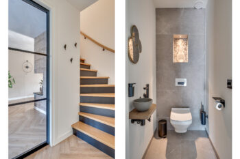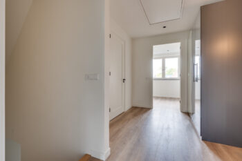 Via een verzorgde en moderne trapopgang bereiken we de ruime overloop van deze fijne semibungalow. Deze overloop verzorgt de toegang tot de tweede en derde slaapkamer, de tweede badkamer en de zolder.