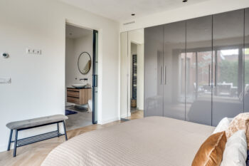 Per schuifdeur is de eerste badkamer via de slaapkamer te bereiken. Deze slaapkamer is praktisch ingericht en modern uitgevoerd gelet op kleurstellingen! Aan sanitair beschikt deze badkamer over een inloopdouche, wastafelmeubel en een wandcloset.