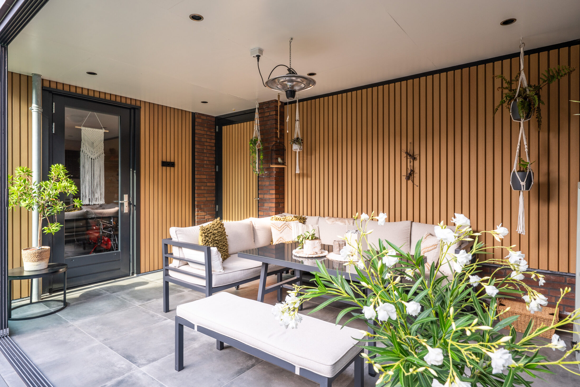 – Fraaie tuinaanleg met straatwerk, terras, gazon en een afsluitbare overkapping aan de achterzijde;