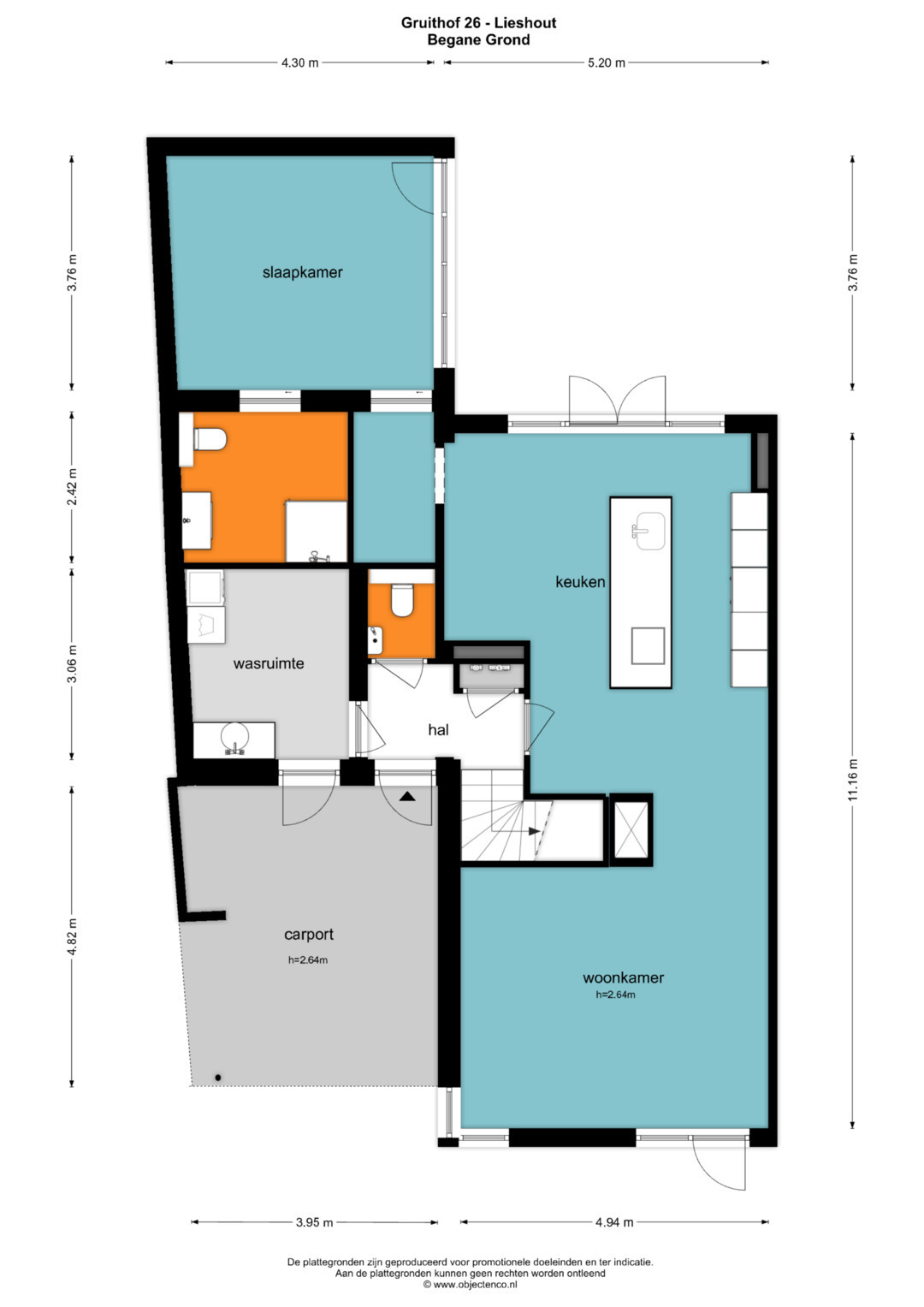 Bij aankomst aan de fraaie woonstraat overheerst een groen en rustig gevoel dankzij de ligging nabij een park en aan de rand van het dorp Lieshout. Vanuit de straat bereikt u de geheel bestrate, nette oprit grenzend aan de voortuin welke middels een carport overdekt is. Vanuit deze carport betreden we de entree van deze woning. Aan de entree zijn gelegen de moderne toiletruimte, voorzien van fraai tegelwerk, wandcloset en fonteintje, de trapopgang naar de eerste verdieping, meterkast, woonkeuken en de multifunctionele ruimte/bijkeuken.