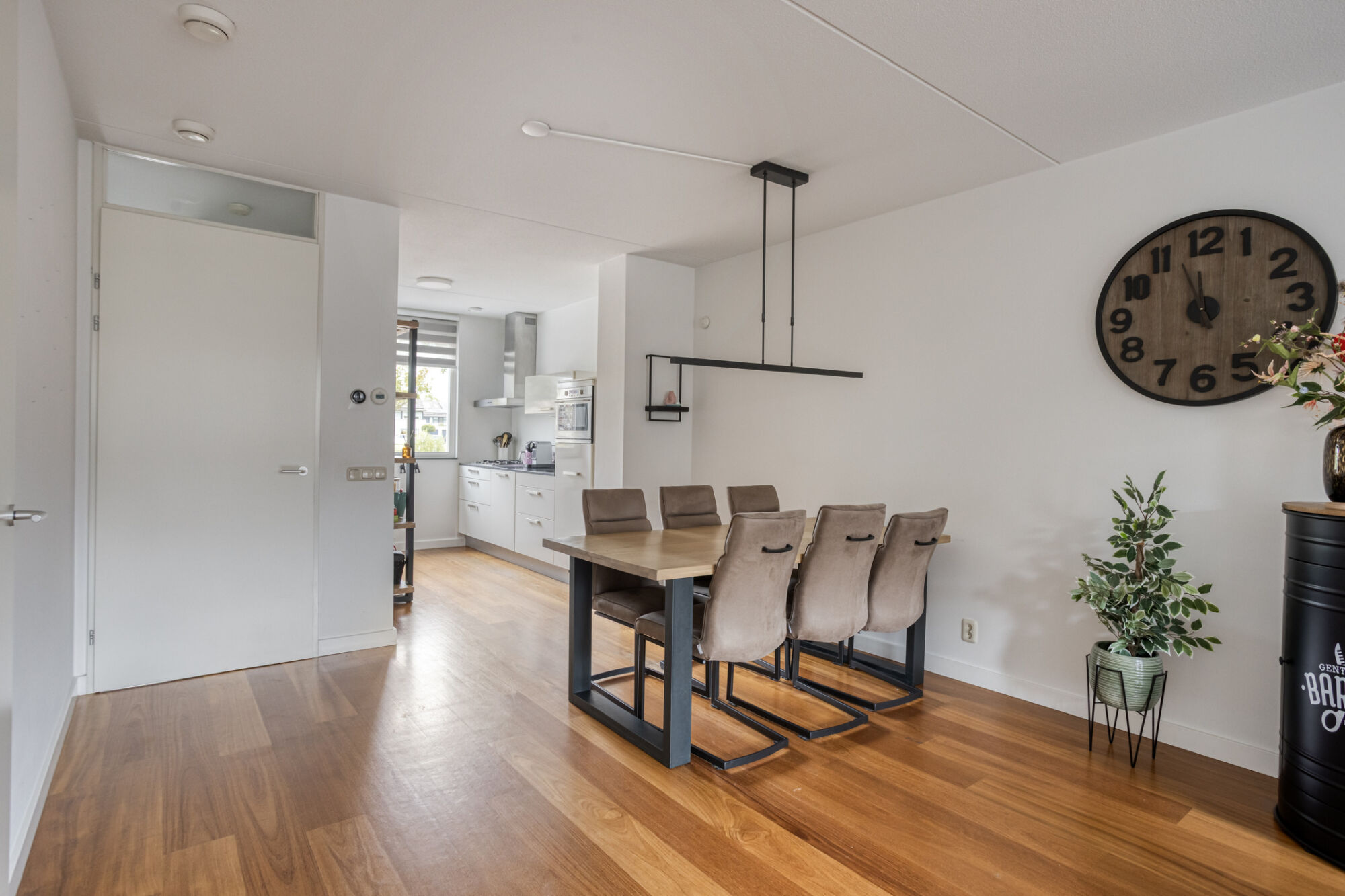 De woonkamer biedt talloze mogelijkheden qua indeling. Het zitgedeelte is momenteel geplaatst aan de achterzijde met uitzicht op de tuin maar is geheel naar eigen smaak in te richten.