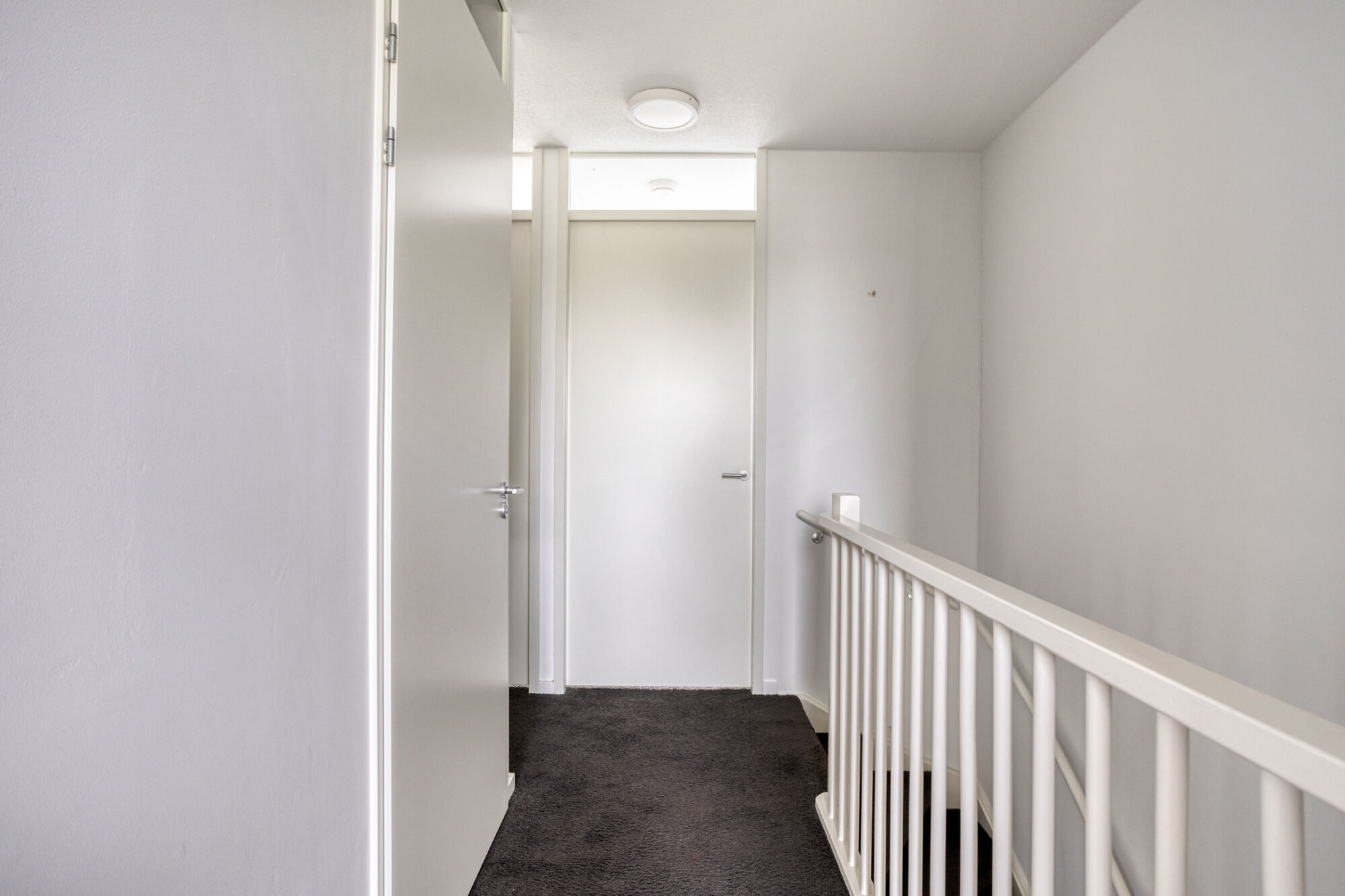 De overloop biedt toegang tot drie slaapkamers, een compleet uitgeruste badkamer en een praktische technische ruimte.