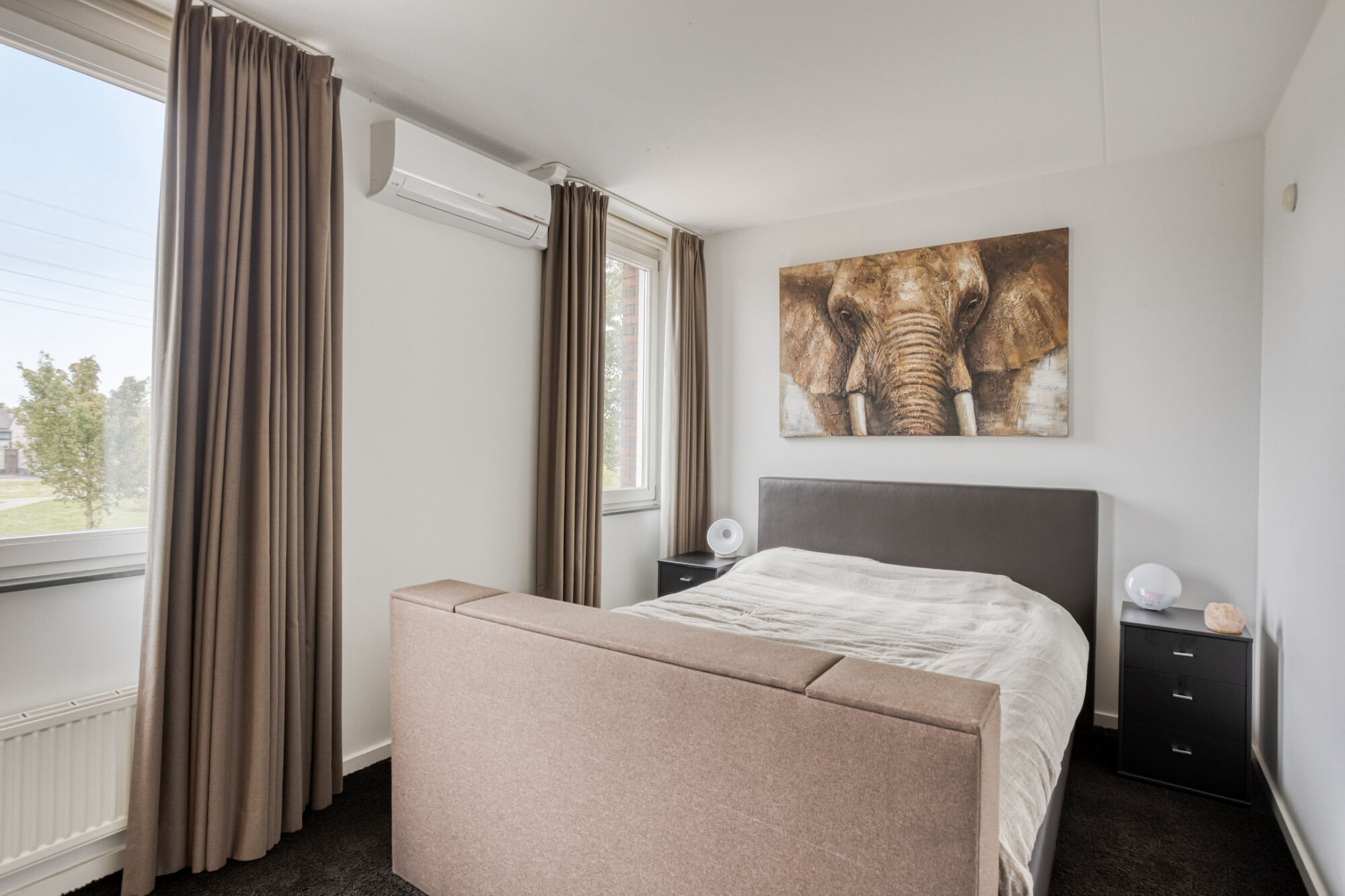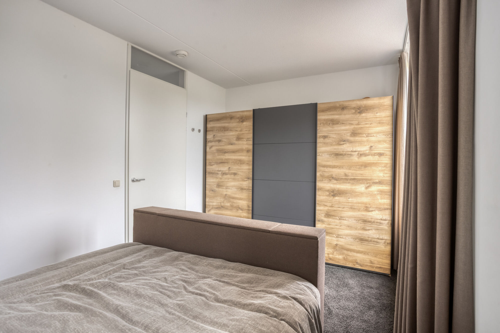 De ruime hoofdslaapkamer bevindt zich aan de voorzijde van de woning en is uitgerust met airconditioning. De twee overige slaapkamers liggen aan de achterzijde. Alle slaapkamers zijn voorzien van comfortabele vloerbedekking en beschikken over zonwering.