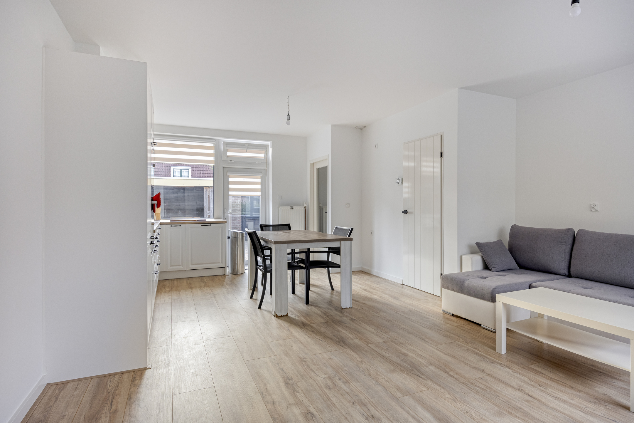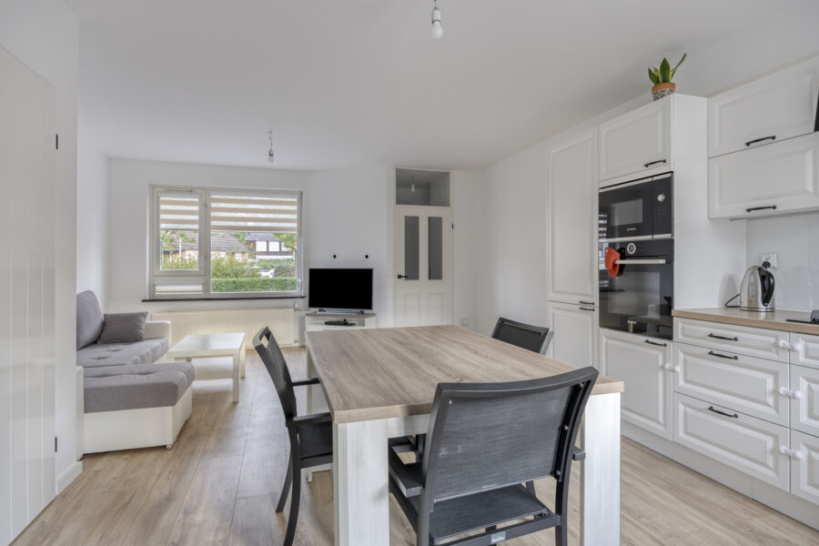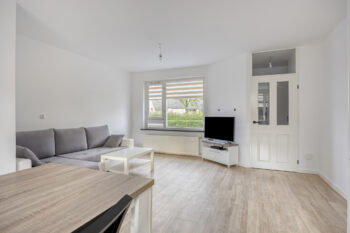 Aan de voorzijde van de woonkamer treft u de zithoek. Deze ruimte is voorzien van grote raampartijen waardoor de woonkamer veel daglichttoetreding geniet. Tevens beschikt u over talloze indelingsmogelijkheden m.b.t. het creëren van deze gewenste zithoek. Daarbij biedt de zithoek uitzicht over het aan de voorzijde gelegen veldje van het woonhofje.