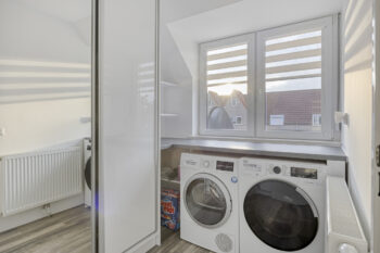 Op de eerste verdieping bevindt zich een separate wasruimte met inbouwkast, tevens mogelijk te gebruiken als kinderkamer of thuiswerkplek. De aanwezigheid van deze separate wasruimte is uitermate praktisch en fijn in gebruik!