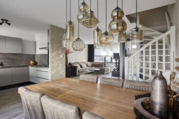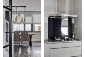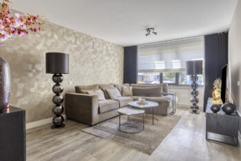 De erg ruime doorzon woonkamer met moderne afwerking biedt volop ruimte voor een gezellige zithoek en eethoek met uitzicht op de fraaie tuin. Door de grote raampartijen aan zowel de voor- als achterzijde van de woonkamer is er veel lichtinval en heeft het geheel een ruim en open karakter.