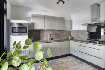 Er is meer dan voldoende bergruimte en het moderne aanrechtblad geeft de keuken een luxe en duurzame uitstraling.
