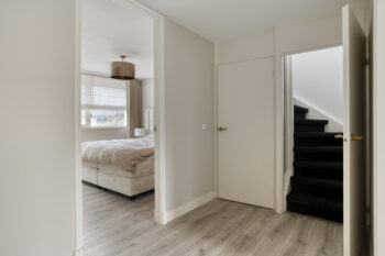 Op de eerste verdieping bevinden zich drie royale slaapkamers, elk met grote raampartijen die zorgen voor een aangename lichtinval en een gevoel van ruimte. De kamers bieden volop mogelijkheden voor een comfortabele inrichting, bijvoorbeeld als hoofdslaapkamer, kinderkamer of thuiskantoor.