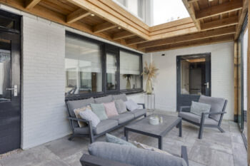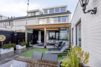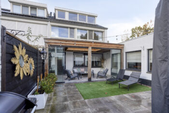 Aan de achterzijde bevindt zich een mooie tuinkamer, met een grote lichtkoepel en een glazen schuifpui – perfect om het hele jaar door te genieten van het buitenleven. Verder is de achtertuin fraai en onderhoudsvriendelijk aangelegd met mooie sierbestrating, erfafscheiding en een eigen achterom. Aangrenzend vind je de fantastische multifunctionele ruimte, die uitstekend dienst kan doen als chillruimte, kantoor, hobbykamer of speelkamer – een echte bonus voor wie flexibel wonen belangrijk vindt.