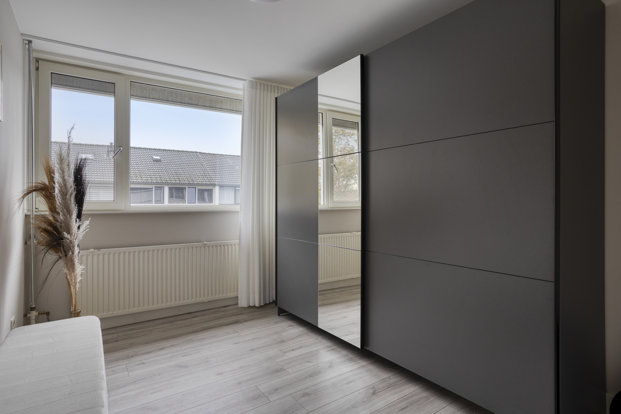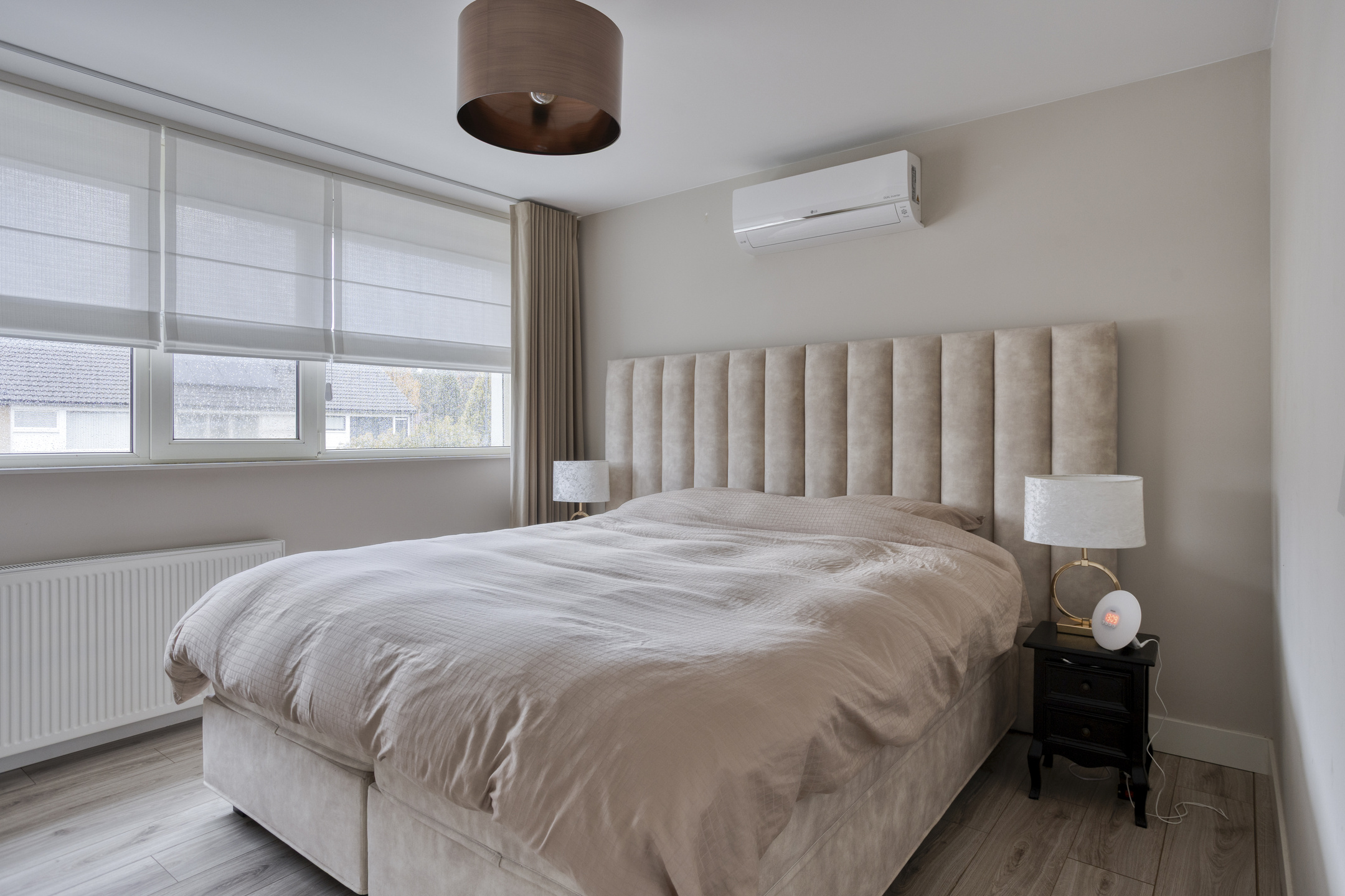 Op de eerste verdieping bevinden zich drie royale slaapkamers, elk met grote raampartijen die zorgen voor een aangename lichtinval en een gevoel van ruimte. De kamers bieden volop mogelijkheden voor een comfortabele inrichting, bijvoorbeeld als hoofdslaapkamer, kinderkamer of thuiskantoor.