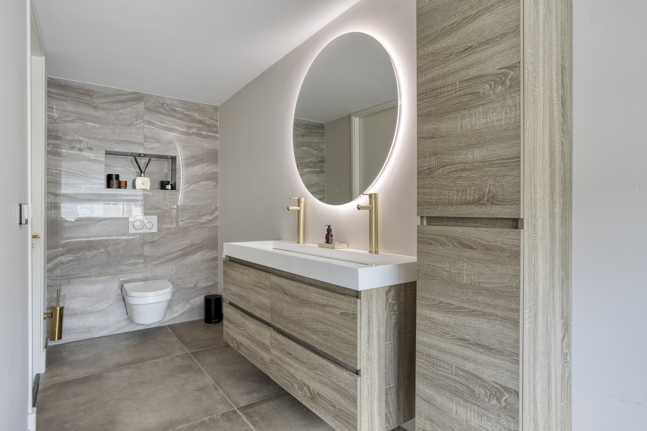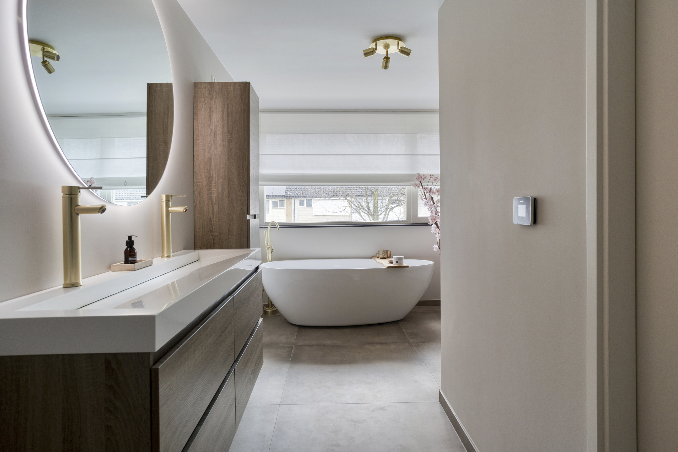 De badkamer is voorzien van een ruime inloopdouche, een vrijstaand ligbad en een fraai badmeubel met dubbele wastafel. Hoogwaardige materialen en een verzorgde afwerking geven deze badkamer een luxe uitstraling en maken het tot een heerlijke plek om te ontspannen.