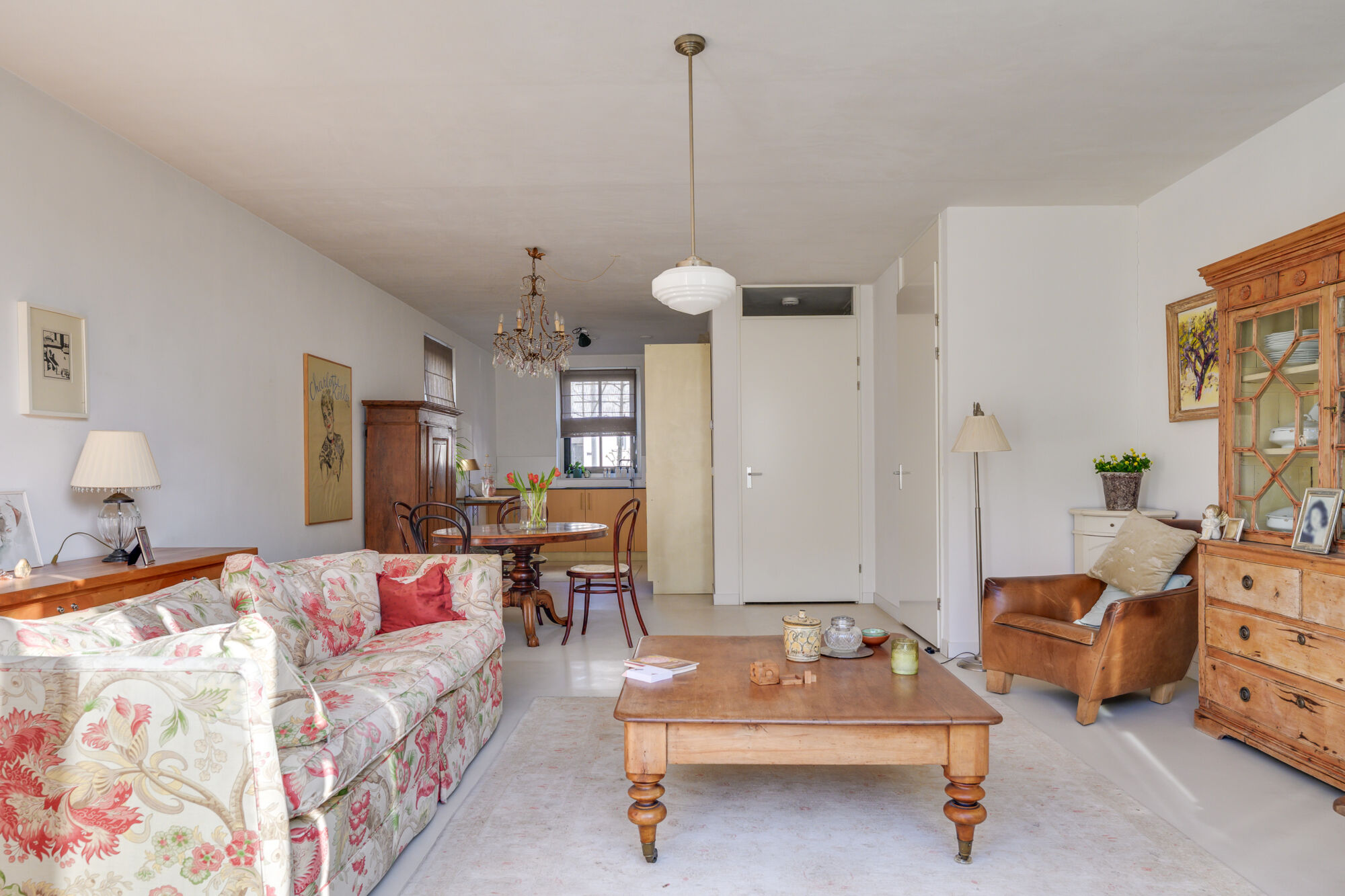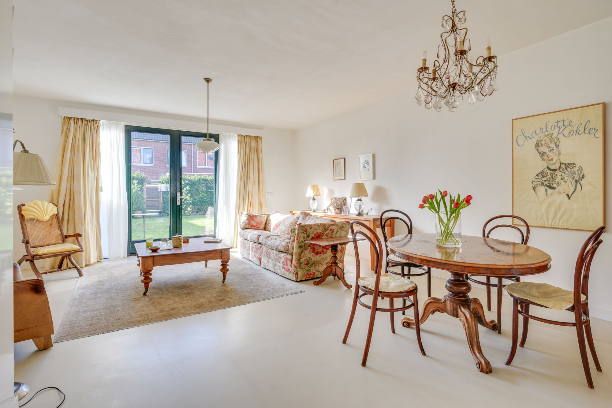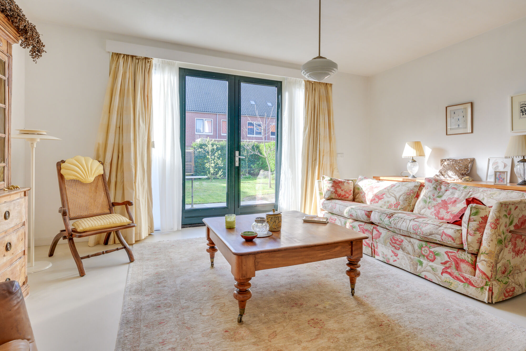 De woonkamer is aan de achterzijde gelegen en de keuken aan de voorzijde. Door de grote raampartijen aan de achterzijde is de woonkamer erg licht. De openslaande deuren geven toegang tot de achtertuin.