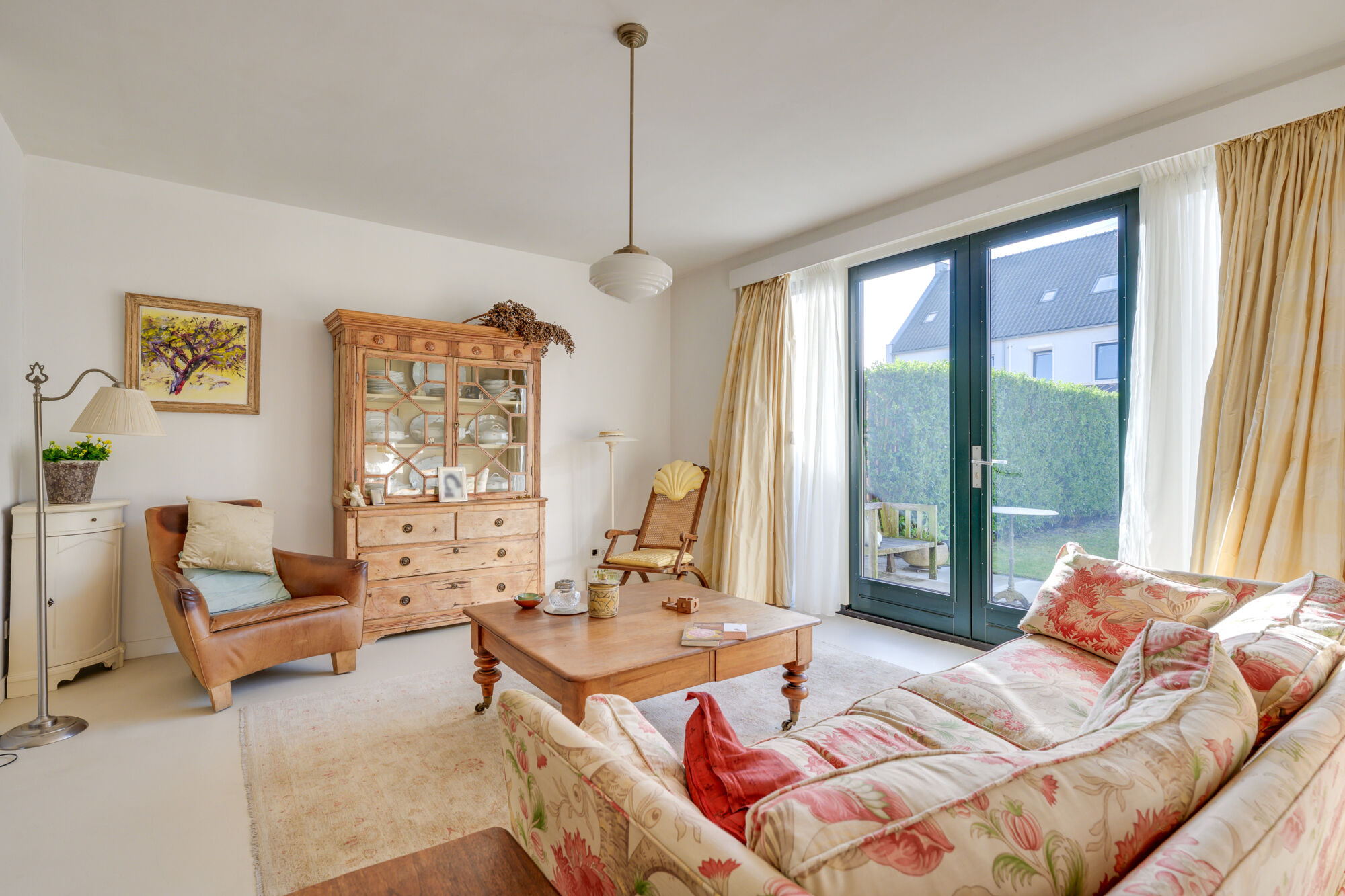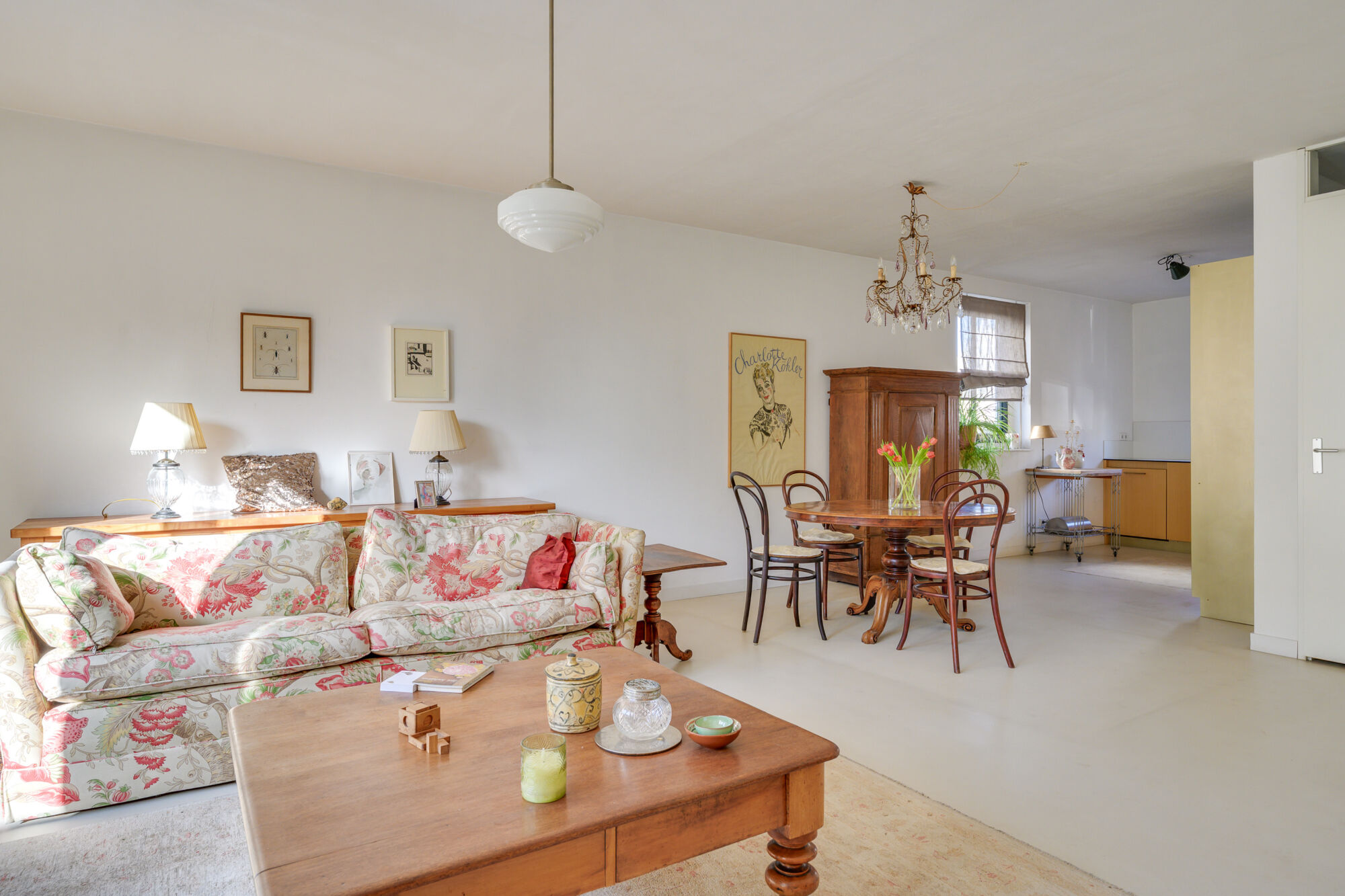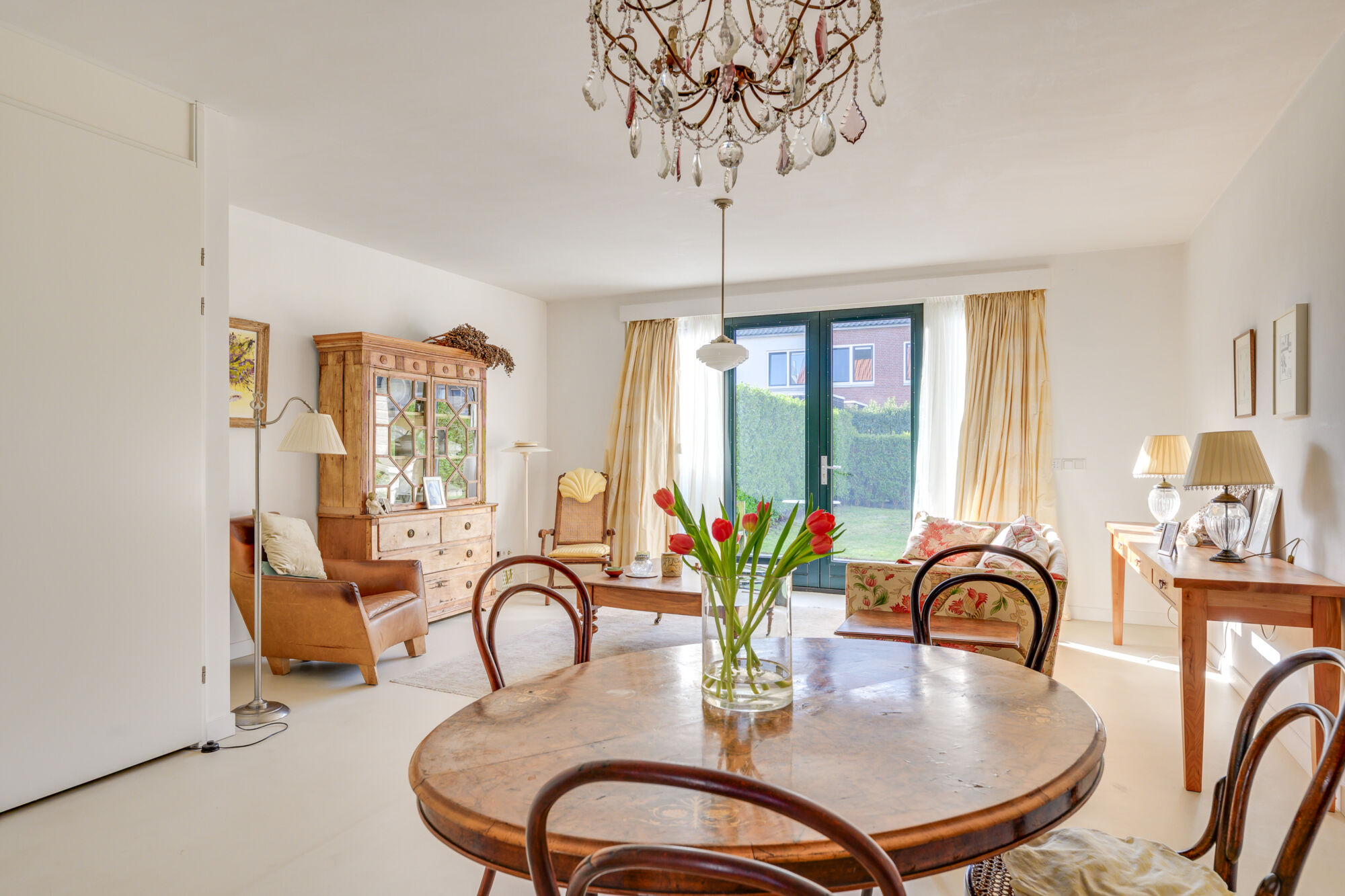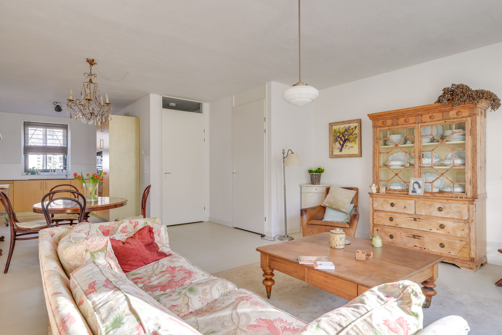 De woonkamer is aan de achterzijde gelegen en de keuken aan de voorzijde. Door de grote raampartijen aan de achterzijde is de woonkamer erg licht. De openslaande deuren geven toegang tot de achtertuin.