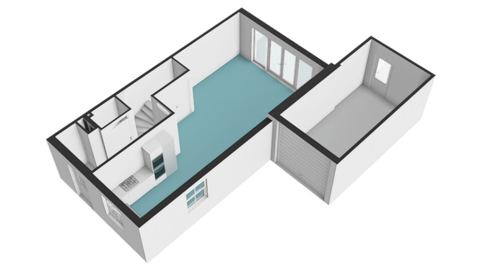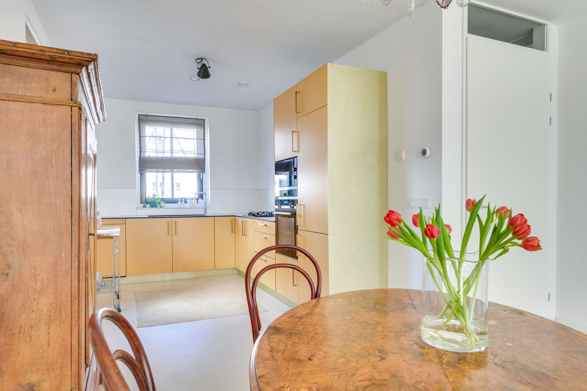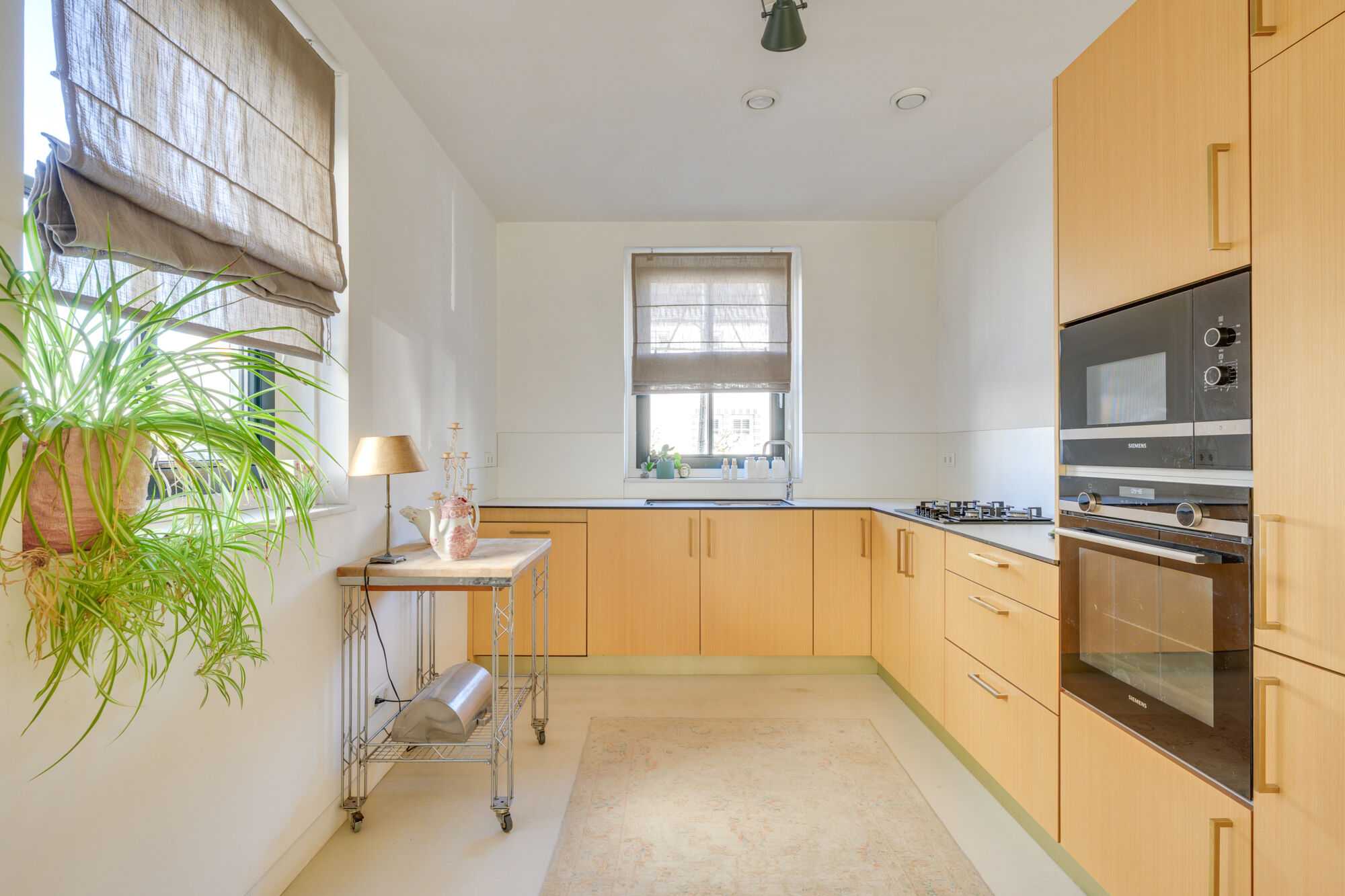 De keuken is aan de voorzijde gelegen. Vanwege het grote raam in de voorgevel en zijgevel is het hier prettig werken. U kijkt hier gezellig uit over de straat.