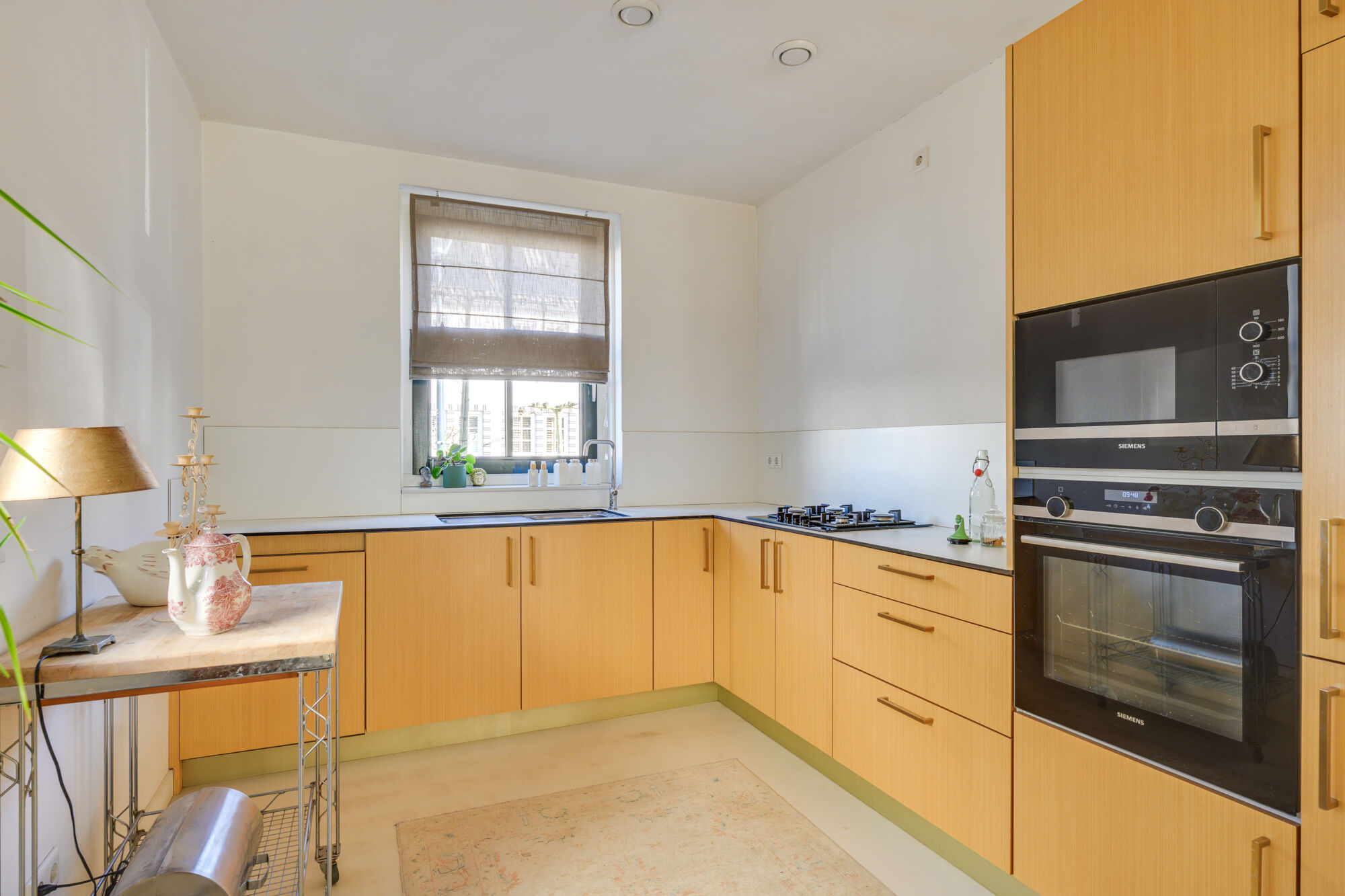 Aan apparatuur treffen we een vaatwasser, koelkast, gaskookplaat, magnetron en oven, allen van Siemens.