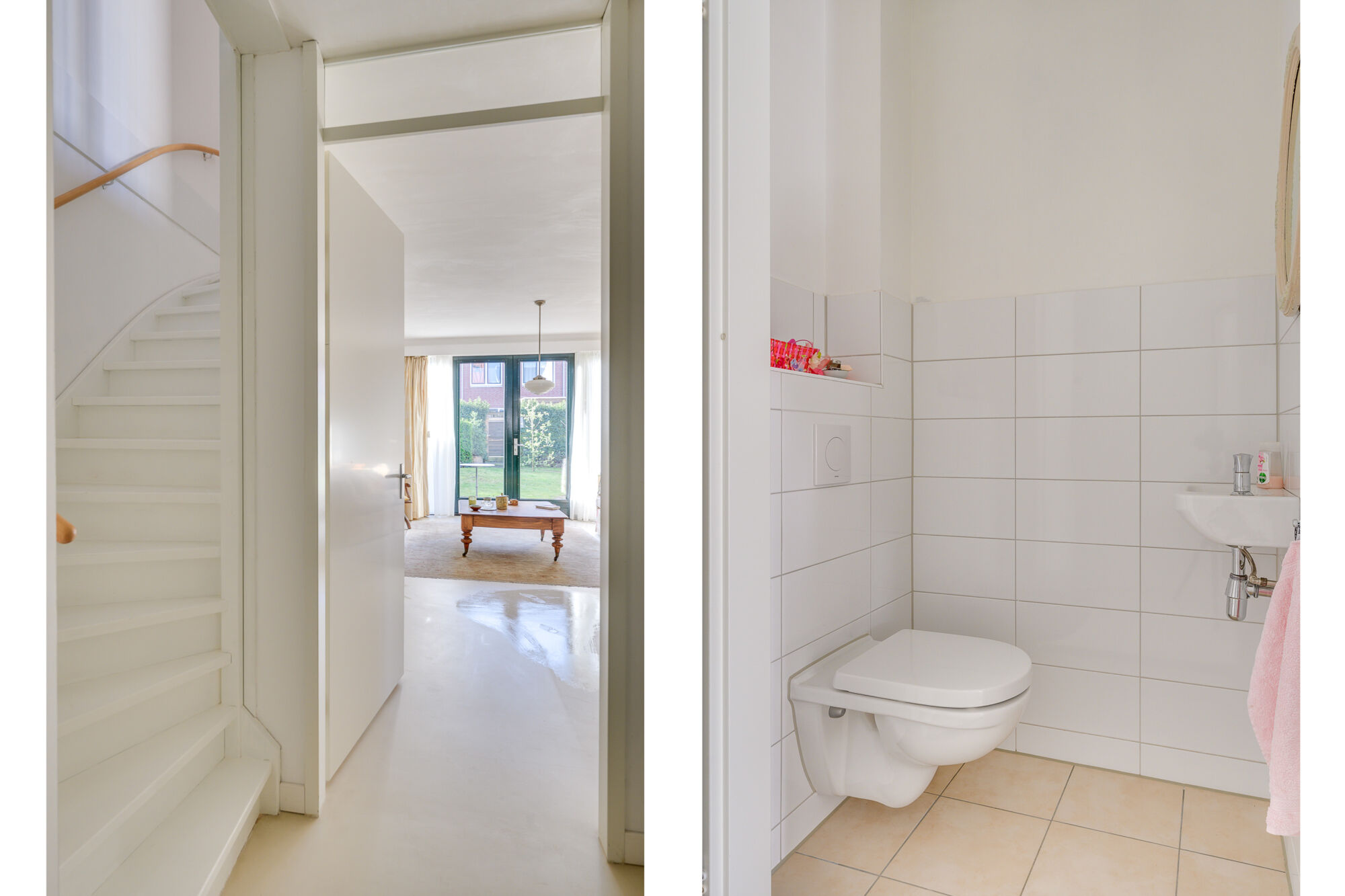 Hal/entree met meterkast, garderobe en een nette toiletruimte. Vanuit de hal heeft u toegang tot de woonkamer en de trapopgang naar de eerste verdieping.
