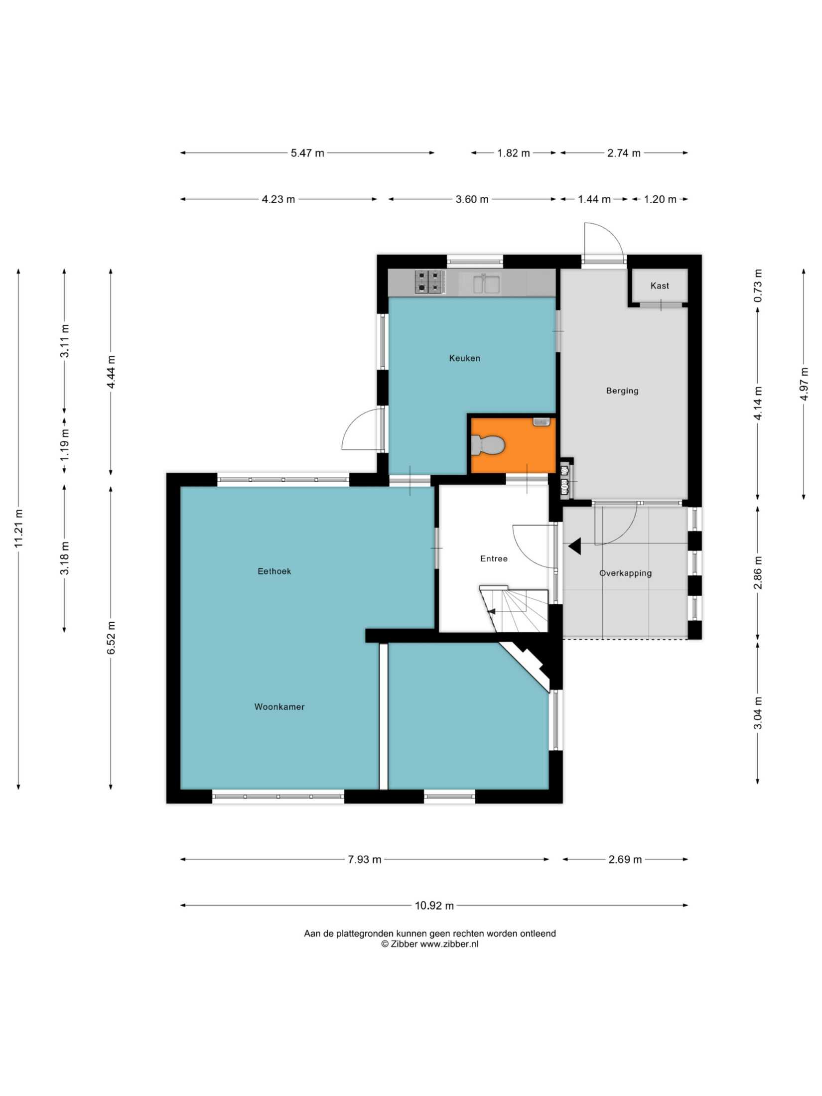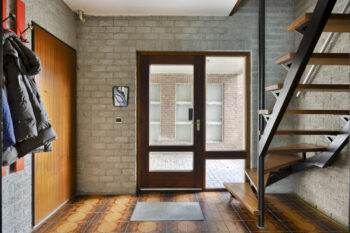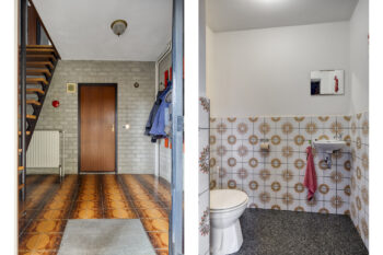 Via de ruime oprit, waar meerdere auto’s geparkeerd kunnen worden, bereikt u via de overkapping de hal/entree. Hier bevindt zich de trapopgang naar de eerste verdieping en een nette toiletruimte, die direct toegang biedt tot de rest van de woning.