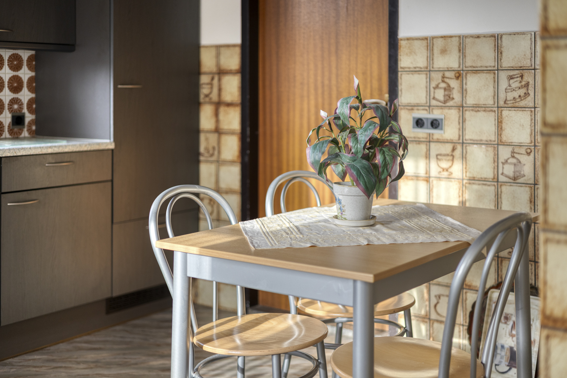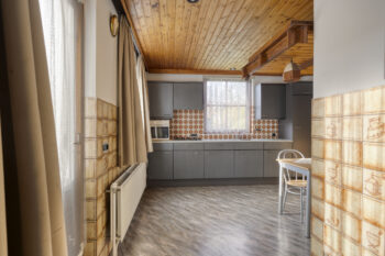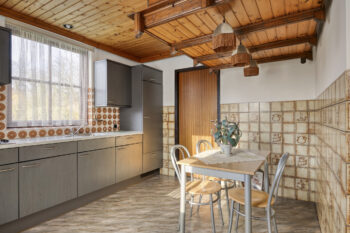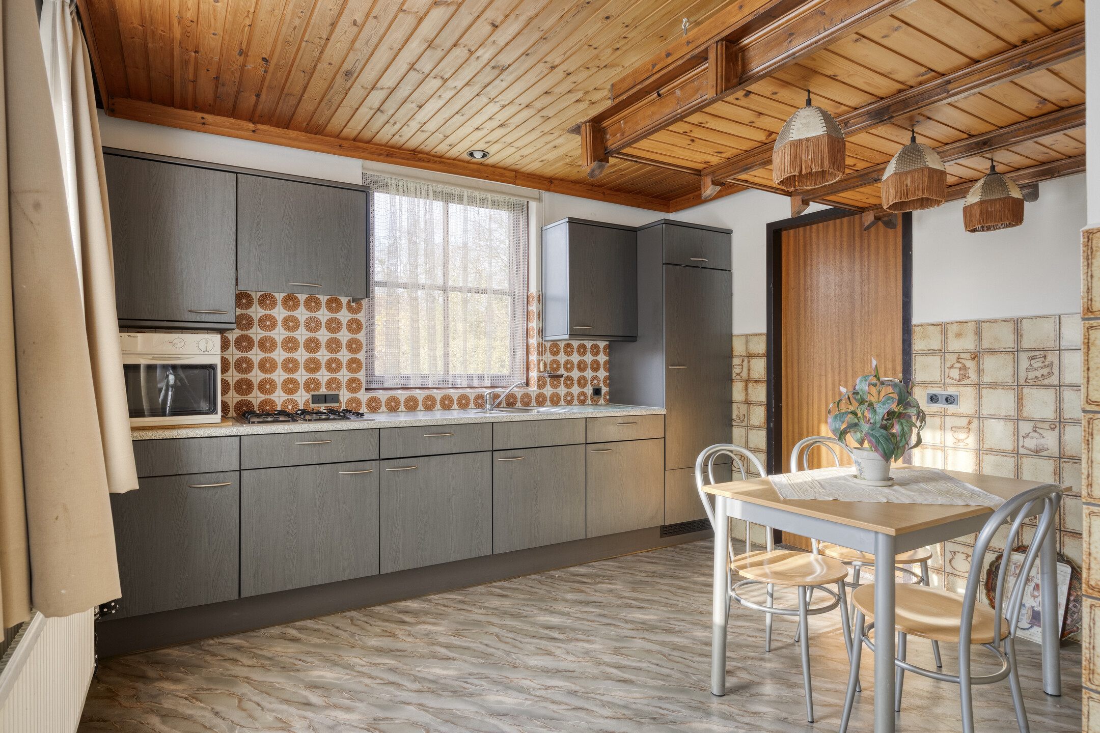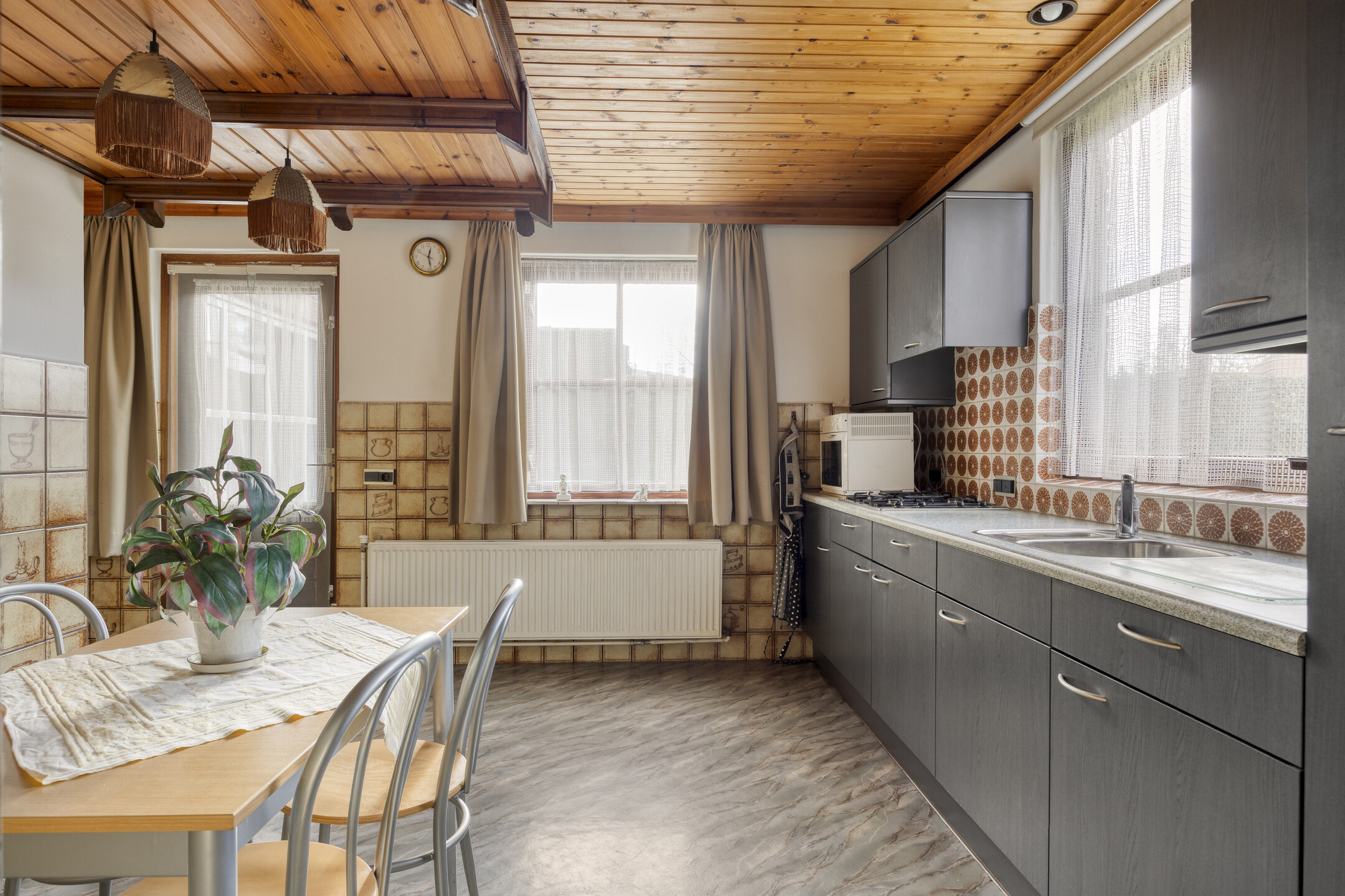 De keuken bevindt zich aan de achterzijde van de woning en kijkt uit op de achtertuin. Het is een praktische, eenvoudige keuken waar het functionele karakter centraal staat. Dankzij de ruime indeling is er voldoende plek voor een eettafel, waardoor u hier zowel kunt koken als gezellig samen eten. De keuken biedt een prettige lichtinval en een aangenaam contact met de tuin, waardoor het een fijne plek is voor dagelijkse bezigheden.