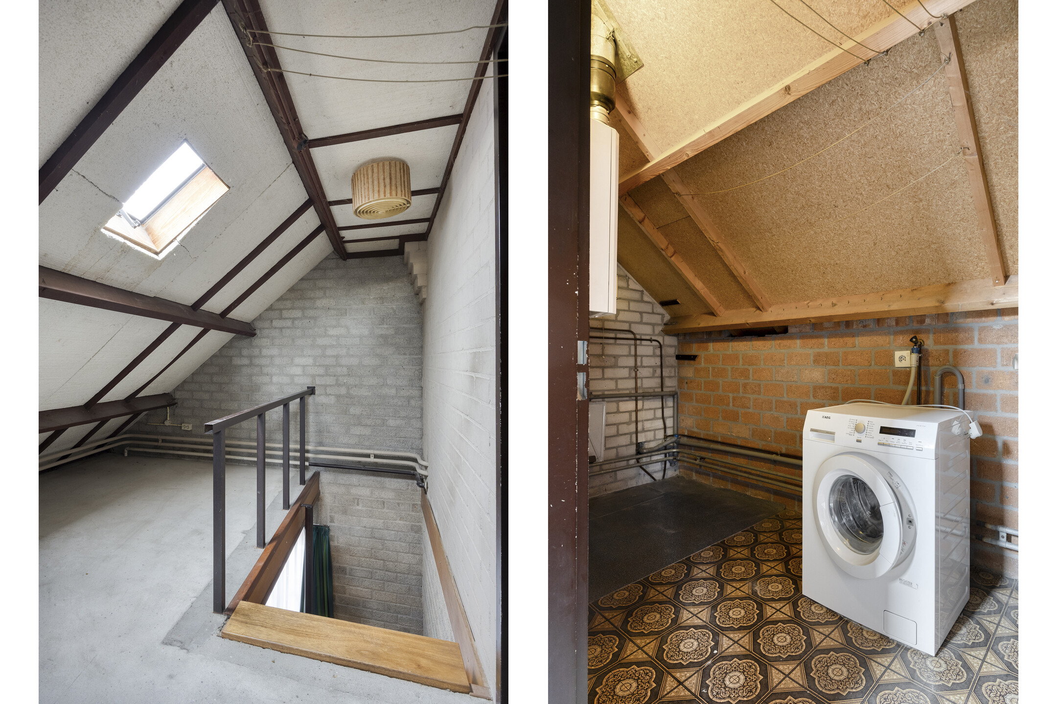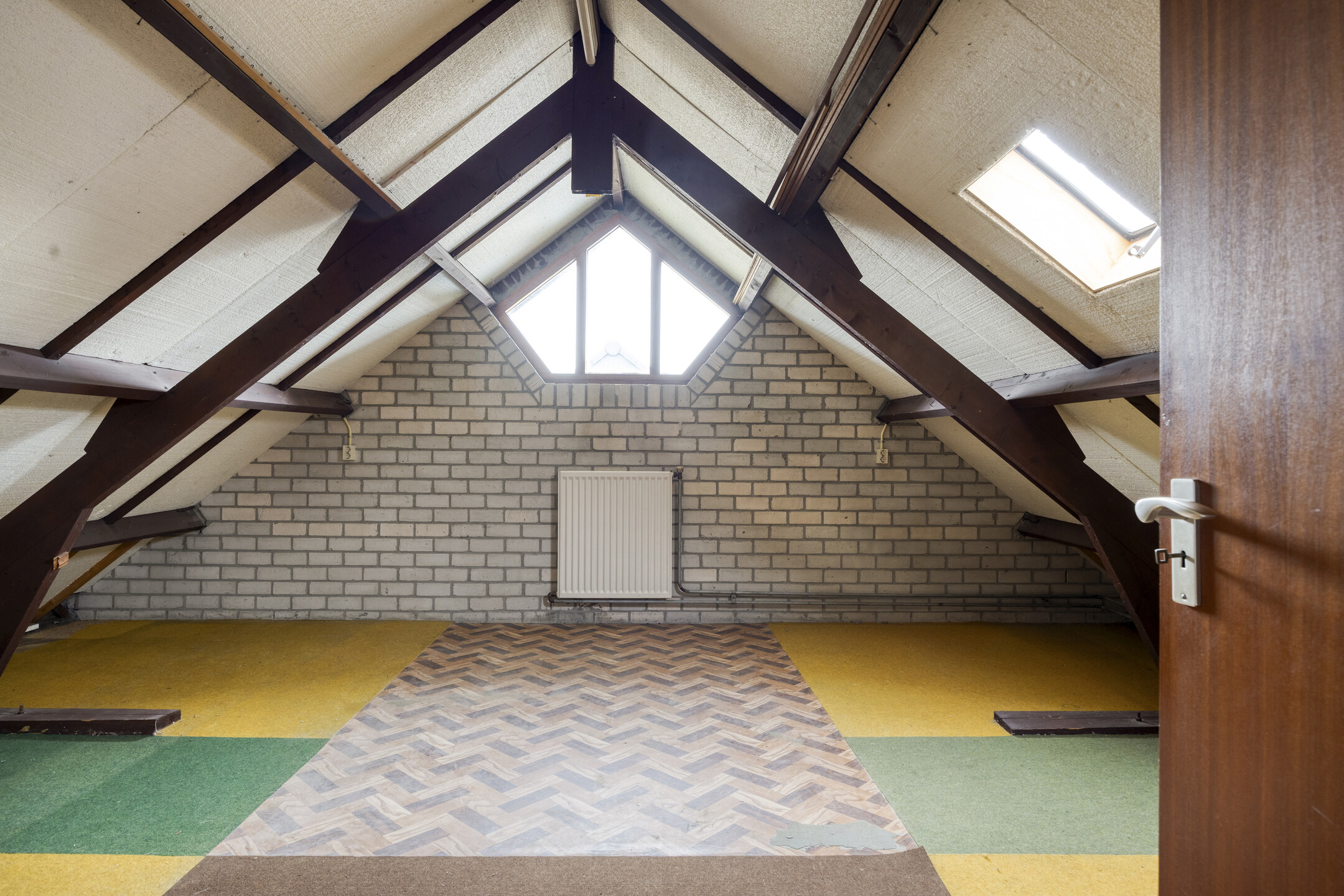 Via de vaste trap bereikt u de overloop van de zolderverdieping. Hier bevindt zich een ruime berging, ideaal voor het wassen en drogen van uw was, waar tevens de Nefit cv-ketel hangt. Aansluitend vindt u de ruime vierde slaapkamer, een prachtige en lichte ruimte die volledig naar eigen wens is in te richten. Het zijraam en het dakraam zorgen voor een prettige lichtinval en een luchtige sfeer.