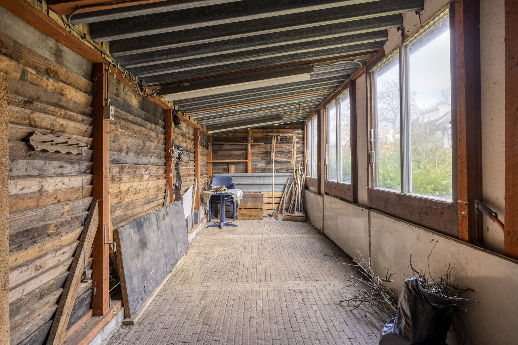Aan de achterzijde van de tuin bevindt zich een zeer ruime berging/hobbyruimte van circa 28 m², die volop mogelijkheden biedt om te klussen, hobby’s uit te oefenen of extra opslagruimte te creëren.