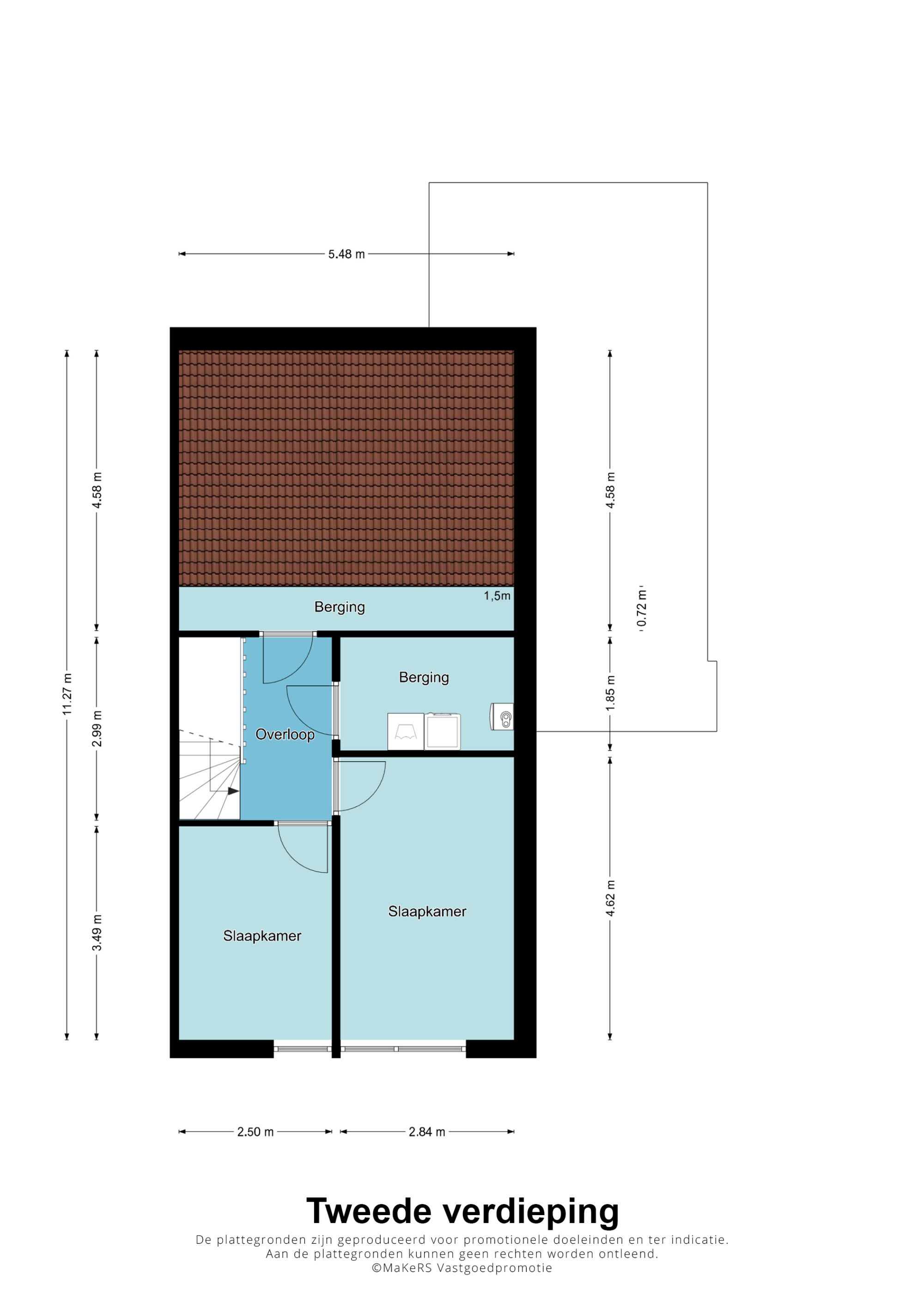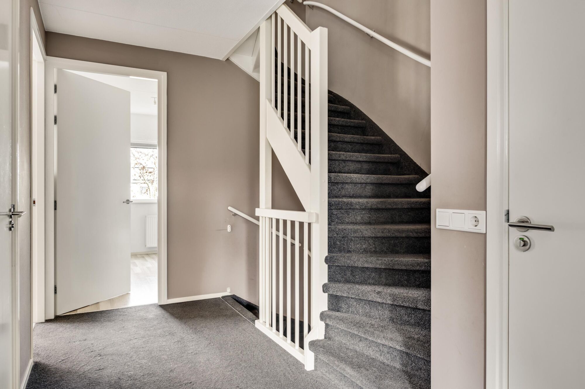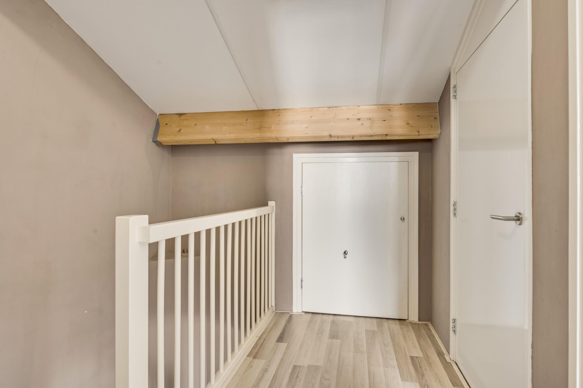 Vaste trap naar de tweede verdieping: De overloop biedt toegang tot slaapkamer 4 en slaapkamer 5, een zeer grote berging onder de schuinte aan de achterzijde en een aparte wasruimte.