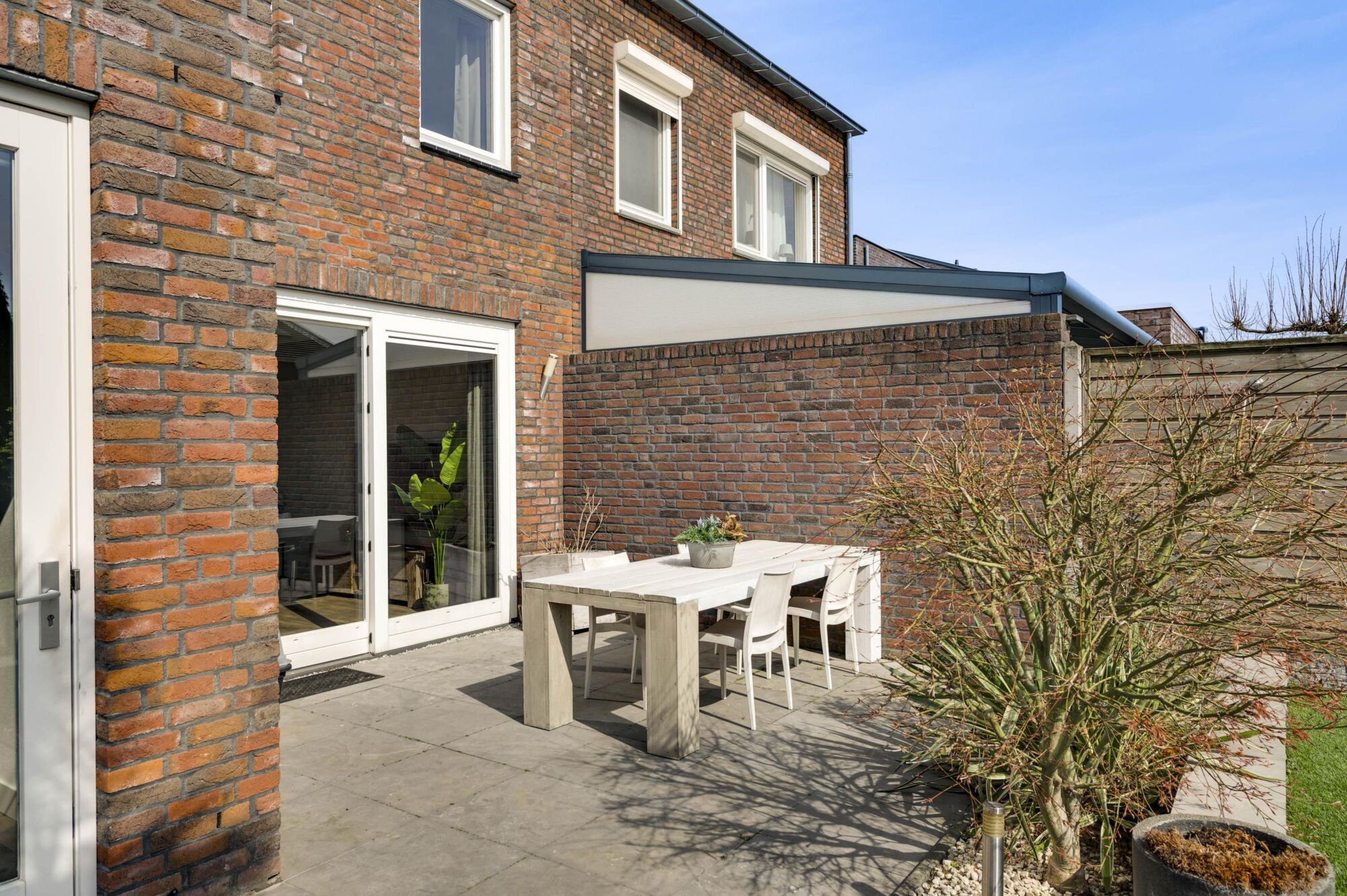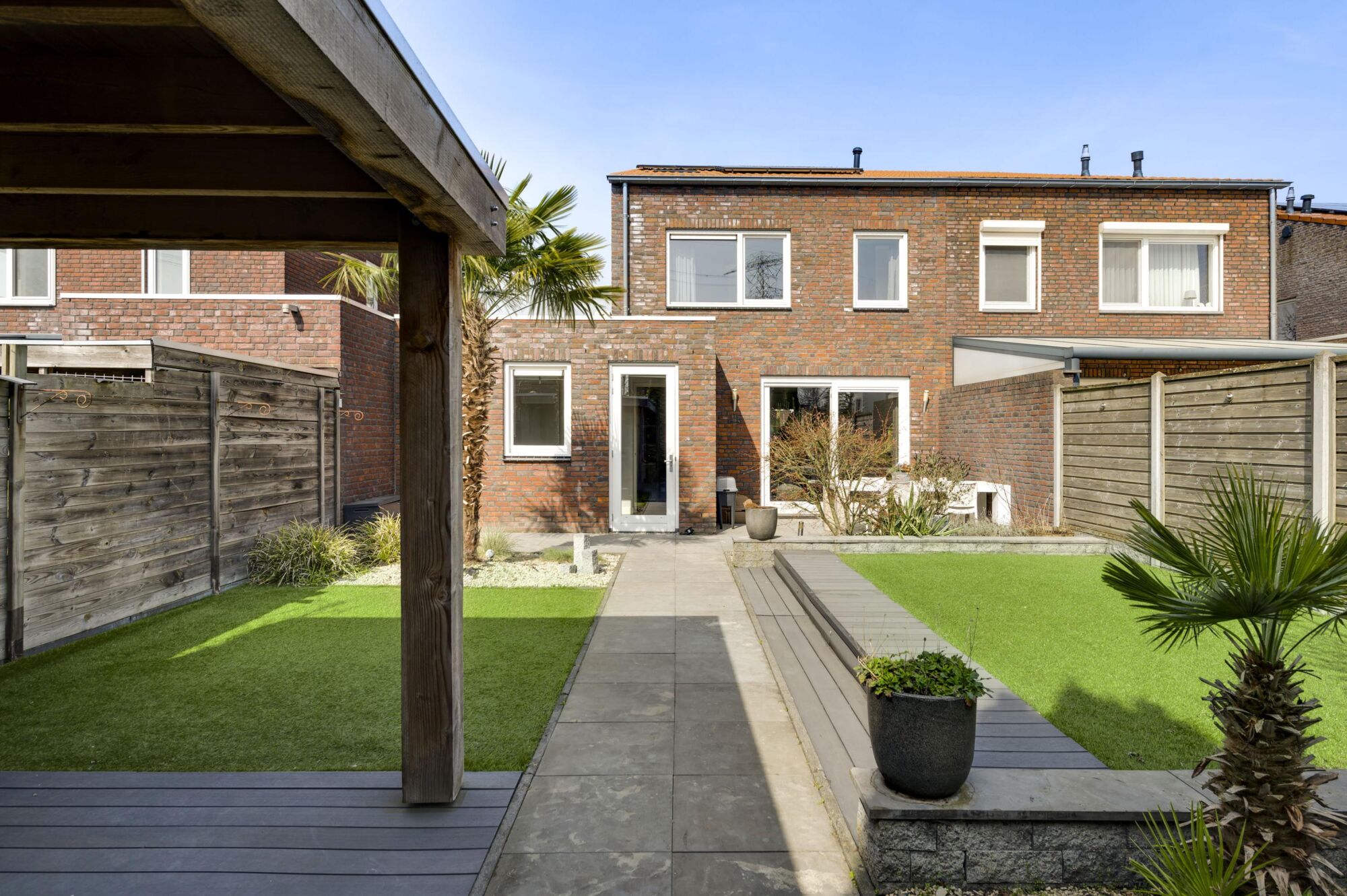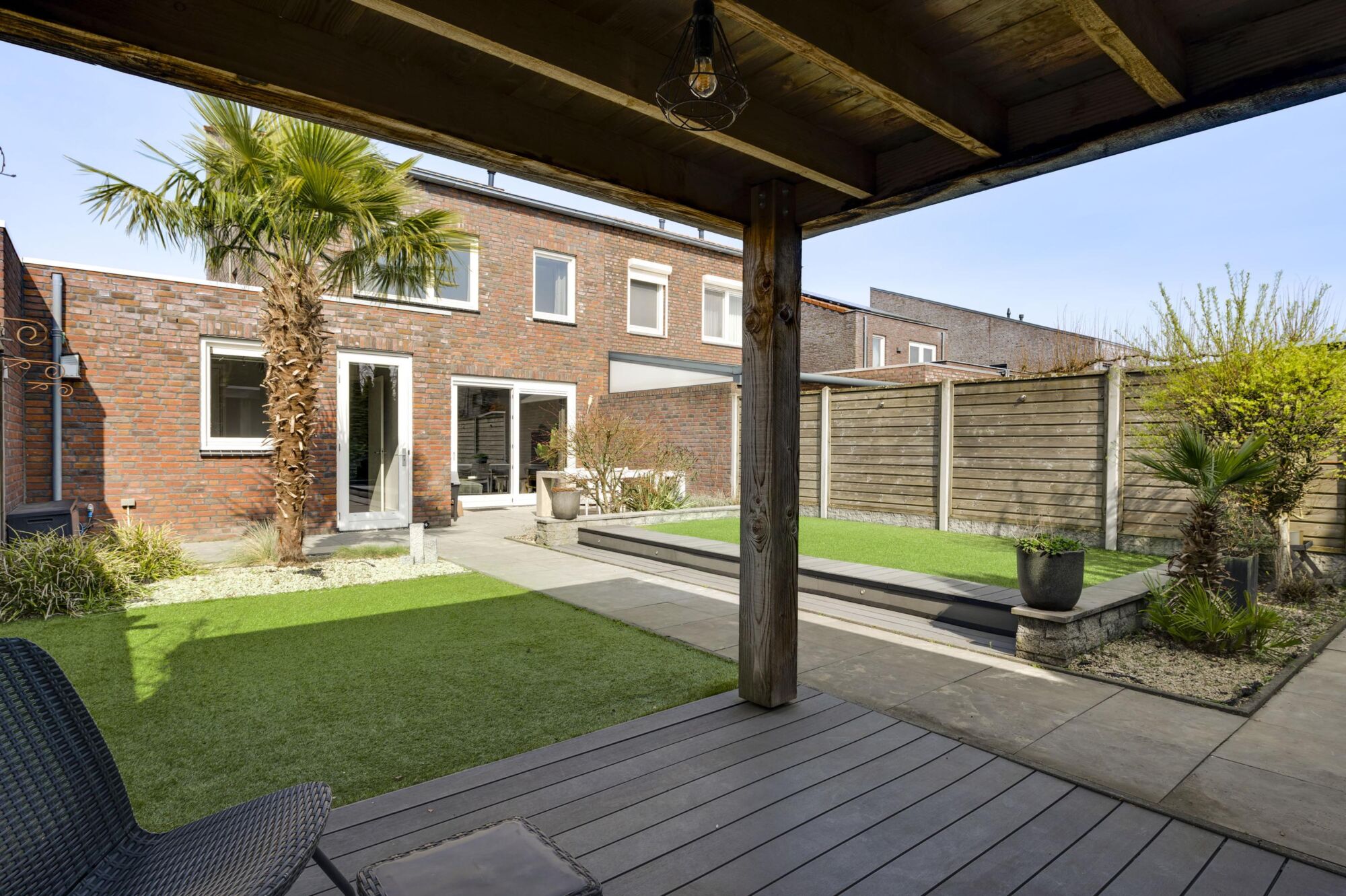 De prachtig aangelegde tuin is bovendien zonnig gelegen op het zuiden. De geheel omheinde achtertuin van circa 13 meter diep en 9 meter breed biedt niet alleen veel ruimte, maar ook veel privacy. Direct bij de achtergevel van het huis bevindt zich een groot terras, en achterin de tuin staat een fraaie overkapping met terras en bar.