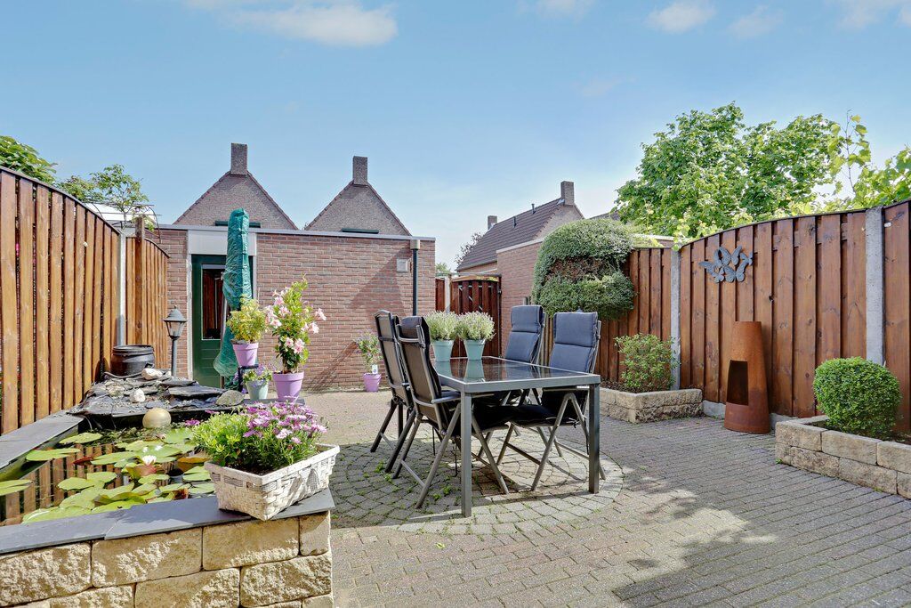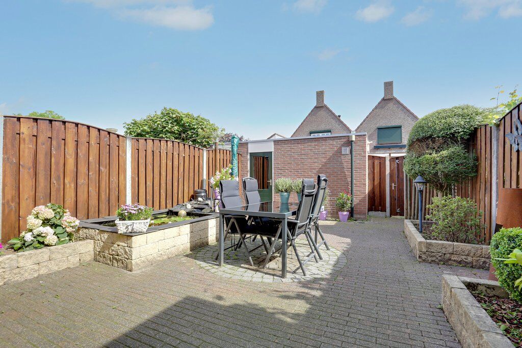 Via de achterdeur bereikt u de geheel omheinde tuin. Hoewel de tuin niet op het zuiden is gelegen, biedt deze een uitstekende balans tussen zon en schaduw. Op de foto’s is goed te zien dat u hier heerlijk in de zon kunt zitten, terwijl er op warme dagen ook voldoende schaduwplekken zijn. Ideaal voor iedere tuinliefhebber. De tuin is onderhoudsvriendelijk aangelegd met sierbestrating en fraaie borders. Achterin bevindt zich een verrassend ruime halfsteense berging met achterom. Wat extra prettig is: er is nagenoeg geen inkijk vanaf de achterzijde, waardoor u hier volop kunt genieten van rust en privacy.