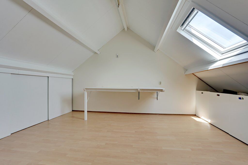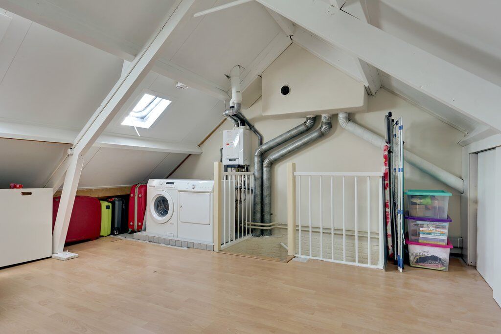 De tweede verdieping beschikt over een overloop met de HR-combiketel (2014) en aansluitingen voor wasmachine en droger. De zolderverdieping biedt volop mogelijkheden en kan eenvoudig worden afgewerkt tot een ruime vierde slaapkamer, hobbyruimte of thuiswerkplek.