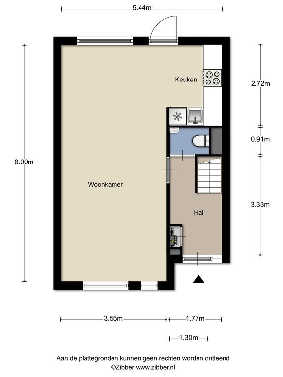 fonteintje. De begane grond is voorzien van een fraaie PVC-vloer, die drempelloos is doorgelegd naar de woonkamer en keuken en zorgt voor een rustige uitstraling.