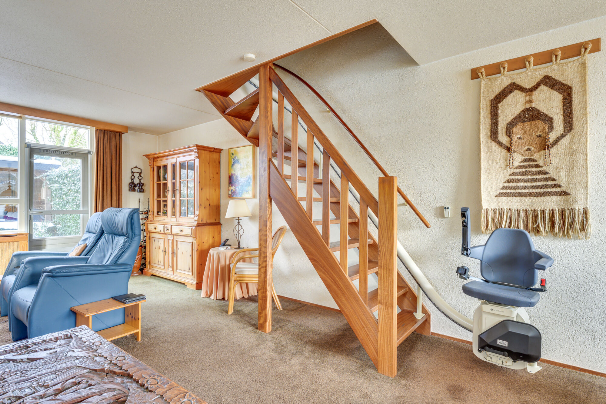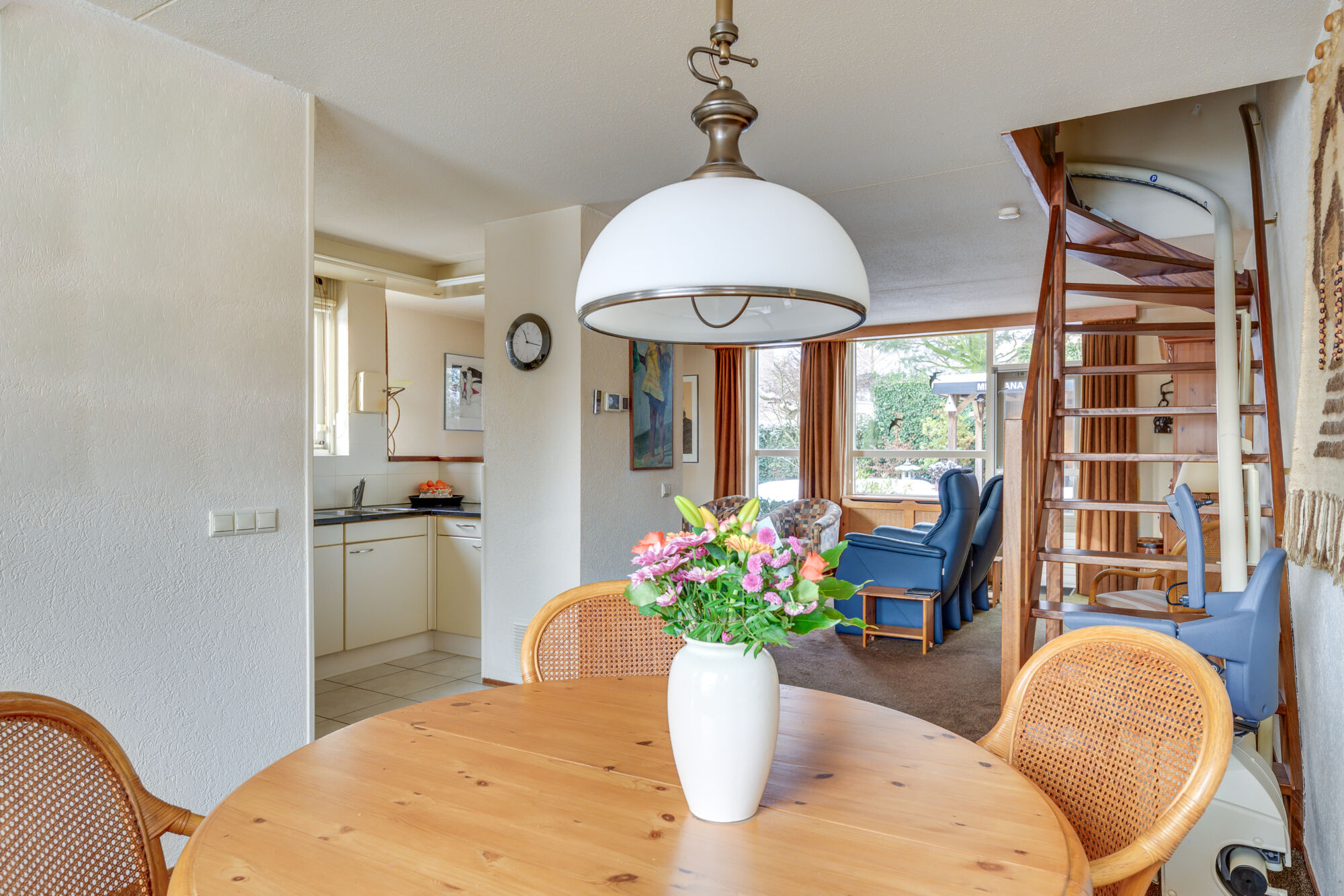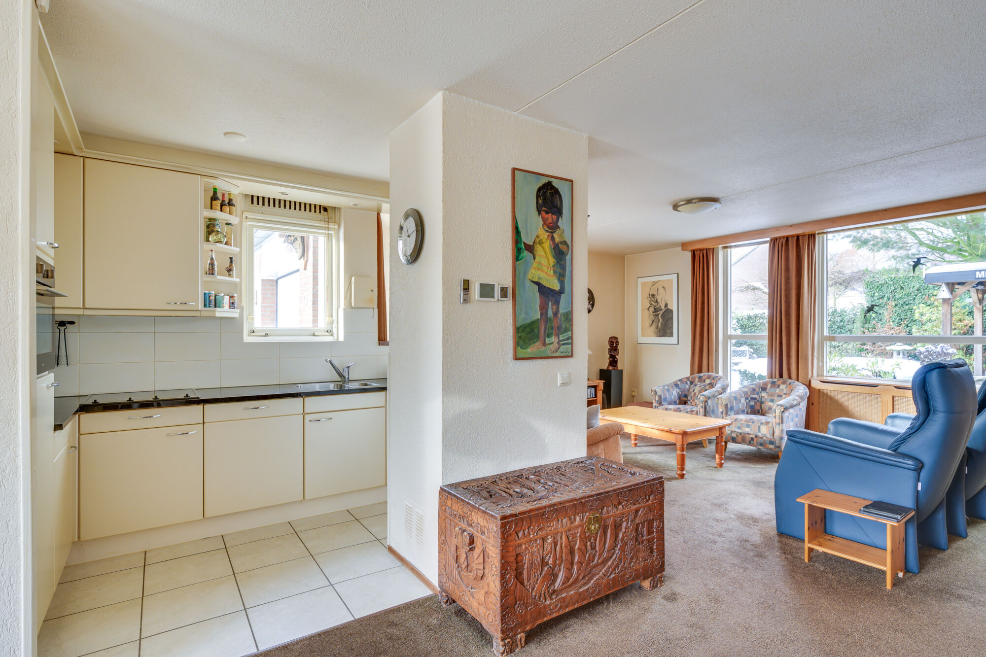 Bij binnenkomst in de woonkamer valt direct de warme huiselijkheid en het karakter van deze woning op. Dankzij de prettige lichtinval heerst er een aangename sfeer, die bijdraagt aan het comfortabele woongevoel.