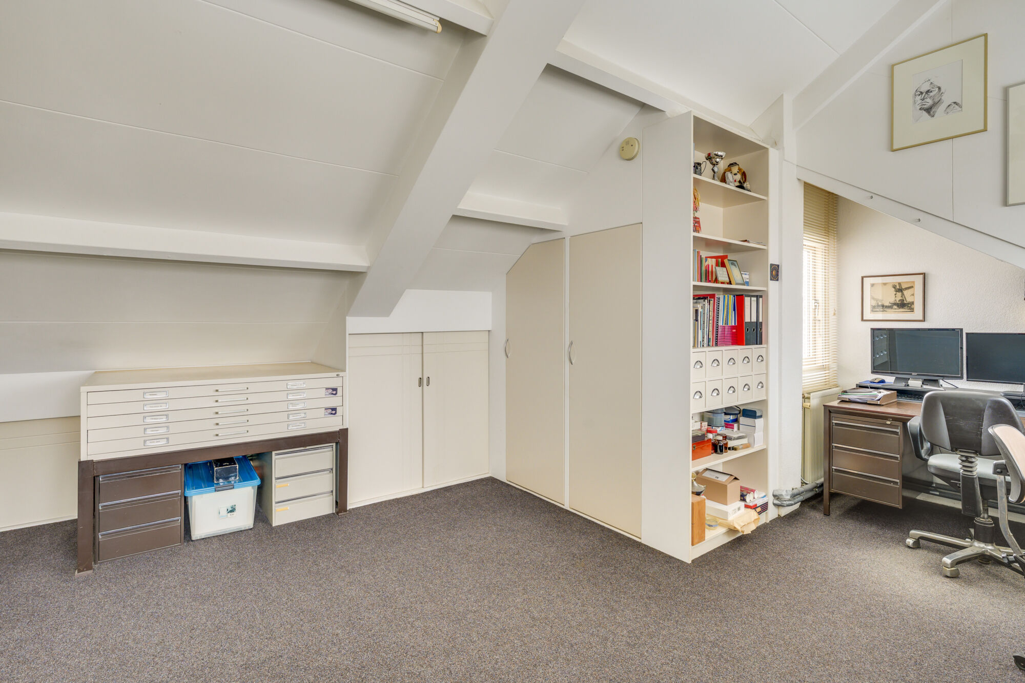 De dakkapel zorgt voor een zee aan daglicht en een aangenaam ruimtelijk gevoel. De verdieping is speels ingedeeld en voorzien van diverse praktische inbouwkasten, waardoor er volop bergruimte aanwezig is. Door de veelzijdige indeling is deze ruimte multifunctioneel te gebruiken en kun je er nog alle kanten mee op, niet alleen als extra slaapkamer, maar ook als werkruimte of hobby- en speelkamer.