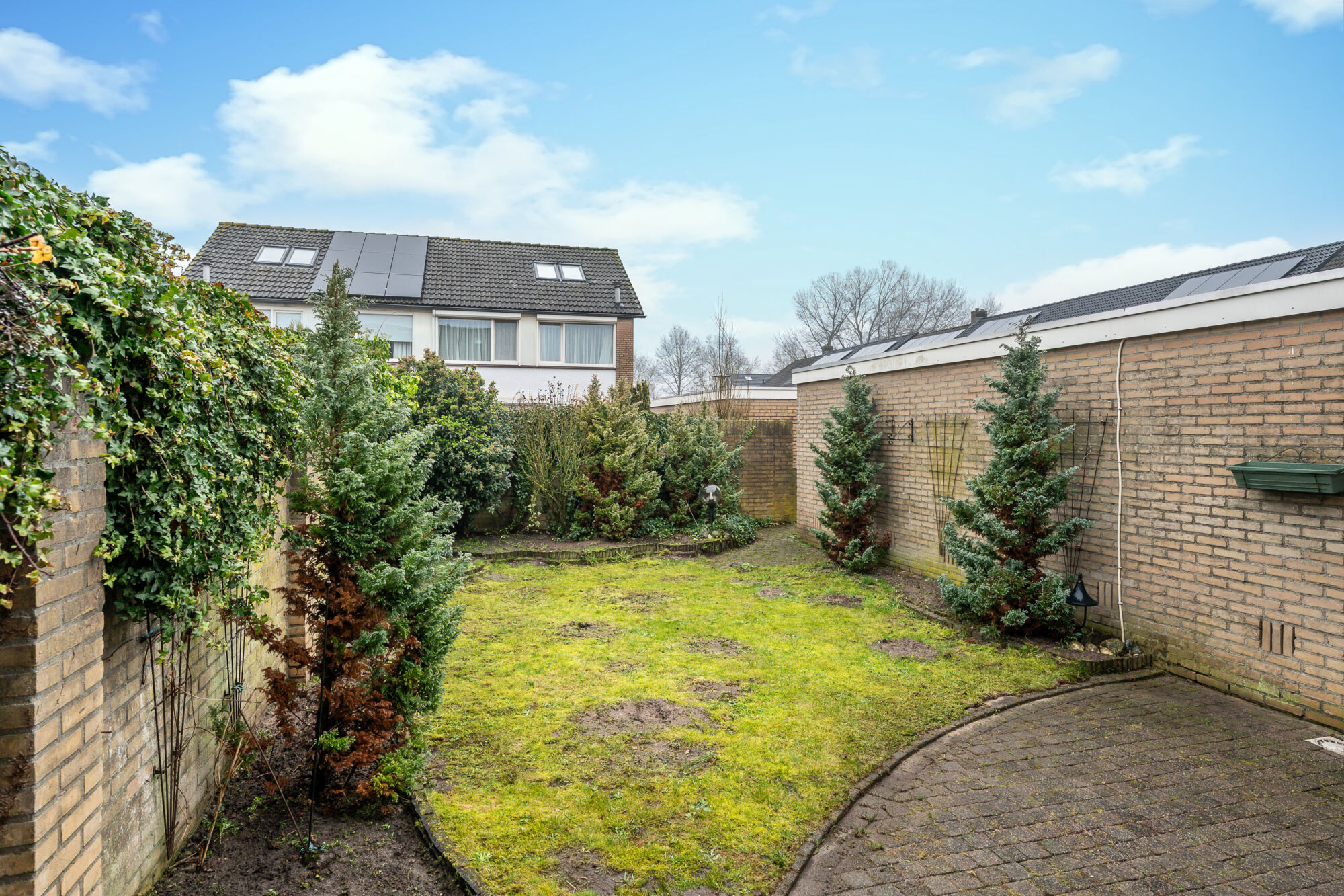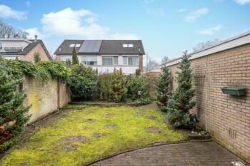 De achtertuin is nog een sterk punt van deze woning. Door zijn grootte kunt u hier veel uurtjes vertoeven! Er is een extra stukje grond aan de achterzijde waar u een achterom treft. De tuin is verder voorzien van een groot terras, een gazon en diverse borders met sierbeplanting. Vanuit de tuin kunt u de stenen berging bereiken. Deze heeft een loopdeur aan de voorzijde. Vanuit de berging loopt u door naar de garage. Deze is voorzien van stalen kanteldeur aan de voorzijde.